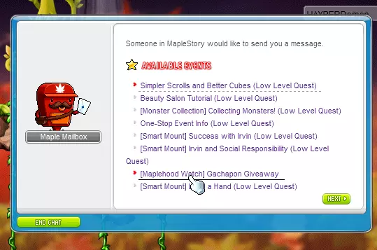 嘿!如果你玩《冒险岛》国际服(GMS),你可能知道目前有一个活动(于2016年7月25日正式开始),让你有机会获得免费的永久NX道具。这意味着该道具永不过期,你可以一直使用,直到你的角色被删除或封禁。听起来很有趣,对吧?更有趣的是,这个活动非常容易利用,因为你可以在每个角色上使用3次。也就是说,如果你有30个角色(等级不限),在活动结束前每天可以获得90个奖励箱!我还没有在其他世界尝试过,但可以确认这在Reboot世界是有效的。我会逐步指导你如何参与这个活动,之后你就可以在每个你想使用的角色上进行操作了。 步骤1:活动大厅 首先,你需要前往活动大厅。在那里,你可以和贝贝先生对话,他会告诉你活动相关的信息。由于我已经在我的DA上完成了,所以无法展示给你。