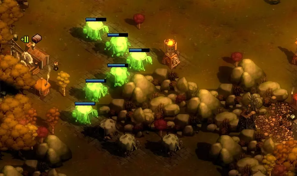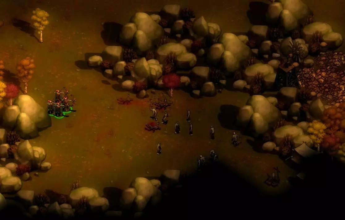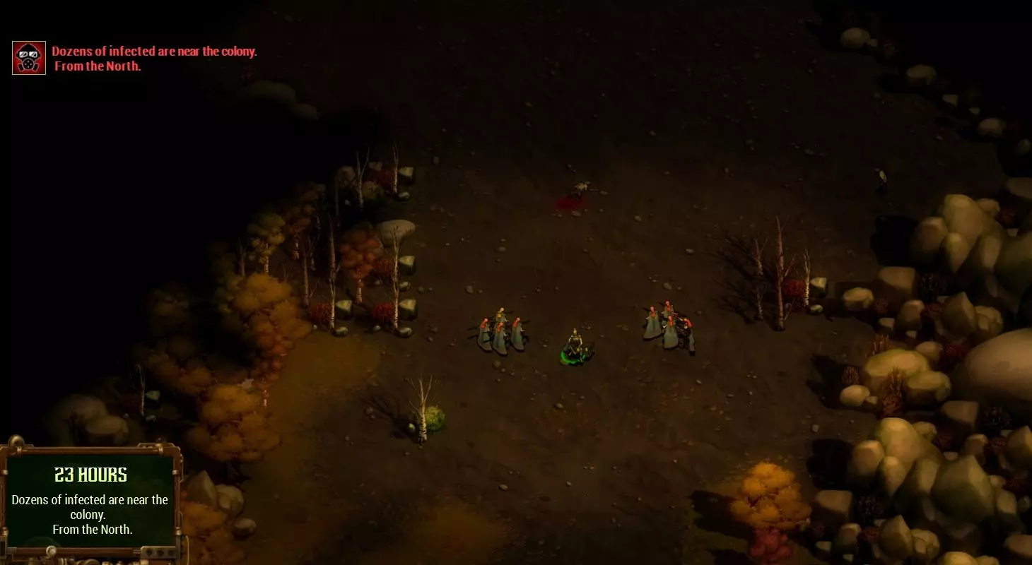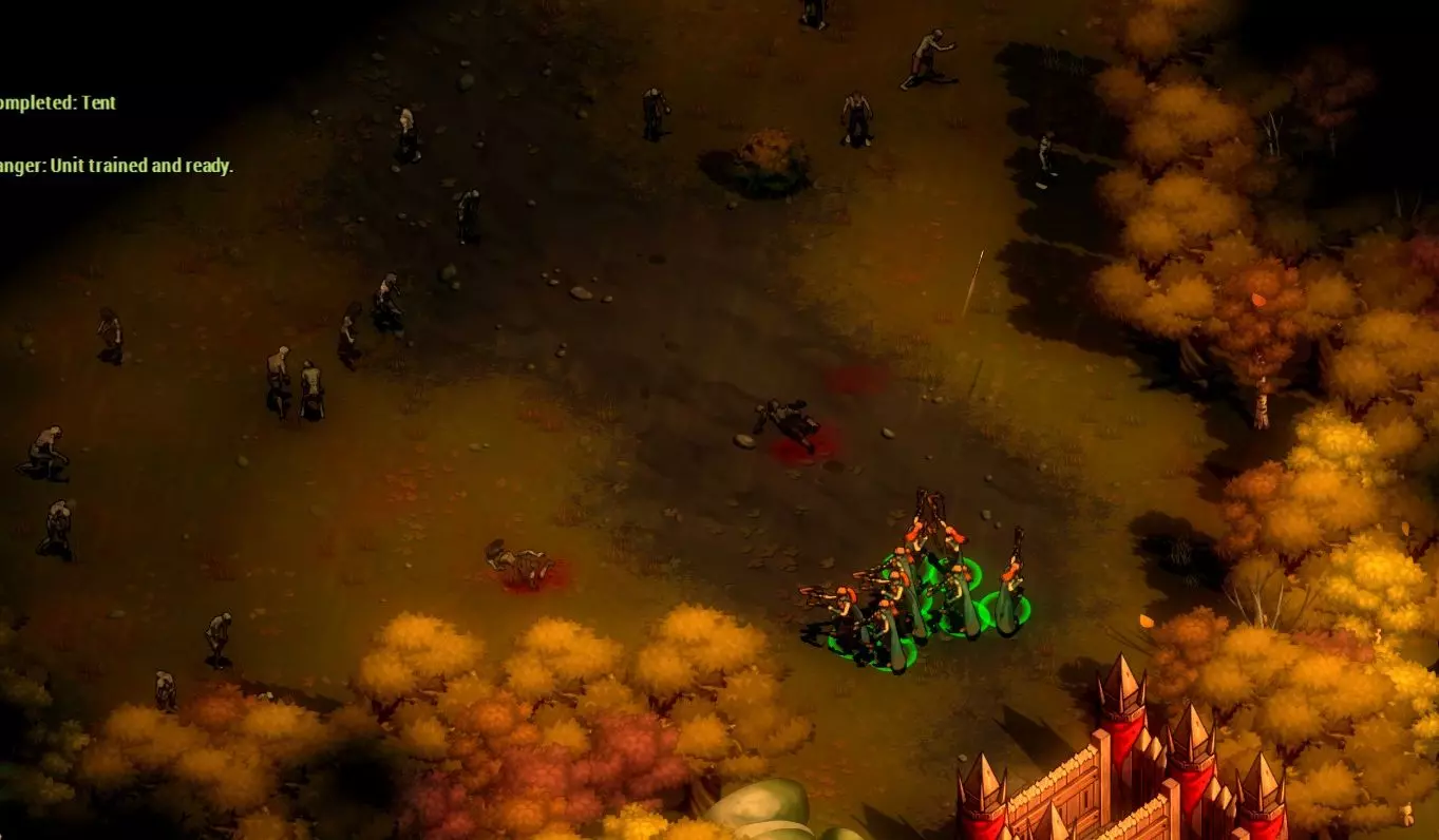 你需要为此准备20块石头,收集这些石头需要几天时间(因为采石场每12小时只能收集约4块石头)。你还需要20块木头,如果你的锯木厂位置摆放得当,收集木头不会花太长时间。但你还需要充足的能量(这可能需要建造风车)和大量空闲工人……以及450金币,所以你可能需要暂缓一天左右的殖民地扩张,以便积累这些金币。 好了,现在你可以训练更多的游侠了。我们开始射杀一些僵尸怎么样? ### 第一步 这款游戏节奏非常快。**当你思考下一步行动时,一定要暂停游戏**。不死部落不会等你。 你的首要任务是四处侦察。这一区域周围有一些低等级的感染者,你需要将它们清除掉。有些人可能会建议你分散游侠,派他们前往各个方向以更快地覆盖区域;但我发现同时选中全部四名游侠并让他们组队行动更为有效,因为这样他们能更快地消灭敌人。你可以尝试找到适合自己的方式。不过,你可能需要留下一到两名游侠进行警戒,以防在你的部队全部外出时,有感染者闯入城镇。