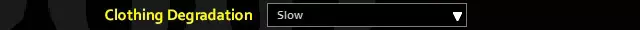 我真的很喜欢新增的不适度选项,但感觉它的负重惩罚实在太严重了。我曾长时间穿戴呼吸器/防毒面具和厚重衣物工作。这有趣吗?不。但能做到不用一直抱怨吗?是的。我认为0.8的数值能在平衡性和真实感之间达到完美的平衡。显然,在僵尸横行的废土中奔跑,身上挂满枪套、戴着防毒面具、穿着防弹/防刺背心和军用制服,不会是最轻松的体验,但绝对是可以做到的。 衣物损耗:缓慢