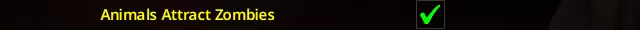角色的逻辑同样适用于此:如果你咳嗽、打喷嚏、大喊,或者发出任何声响,它们就会被你吸引。动物通常并不以极度安静著称,尤其是在受惊或社交时,因此让僵尸被它们的噪音吸引会是最符合现实的设定。 模组选项