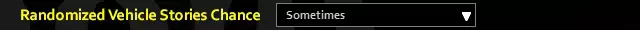 没有消防部门意味着无人灭火;烧毁的房屋、店面和办公楼会极为常见。那些被迫留下或无法逃离的人们可能会尽可能地囤积和藏匿物品,而由于无人救援,遇难的幸存者也会相当普遍。 不过,我将此设置开放给玩家自行选择,因为我知道有不少模组在启用这些设置时可能会出现问题或崩溃。本节中的其他随机选项也是如此。如果使用像“物品故事”(Item Stories)这类模组,只需完全禁用此选项即可。 随机载具故事概率:有时
