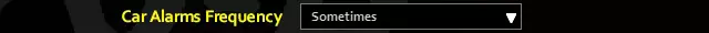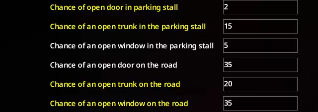 大多数车辆即使闲置一周也不会出现性能下降,即便处于怠速状态也是如此。我倾向于认为在末日来临前,人们会更好地保养自己的车辆,但这一点可以根据“末日之后的月份”选项进行调整。 汽车警报频率:有时/经常