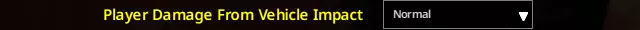 我玩普通难度已经很久了,发现即便是轻微的碰撞也会造成惊人的伤害。我明白这是为了游戏平衡,确保玩家不会一直把车当成撞击行尸走肉(无论是步行还是奔跑的)的攻城锤,但这也太夸张了。我用普通难度的车辆测试了一下对抗尸潮的情况,结果发现在相对低速的情况下撞了大约15次后,引擎竟然从100%的状态直接掉到了将近23%。我曾经(我保证是意外)在100公里/小时(60英里/小时)的速度下多次撞到过50公斤(110磅)的袋鼠,而车辆唯一看起来有轻微损坏的地方,也不过是防撞杆有点弯曲,或者前面板可能有点错位而已。我认为以低于15英里/小时的速度撞击僵尸或围栏/围栏柱,不会损坏发动机,最多只会造成一些轻微的外观损坏或散热器/车架的小损伤。考虑到游戏设定的时代背景,这一点尤为明显——尽管当时的汽车不像现代汽车那样安全,但它们确实采用了更耐用的材料制造,并且设计初衷就是经久耐用。下一个选项应该解决此设置下的任何“利用机制”问题。 车辆撞击对玩家造成的伤害:正常