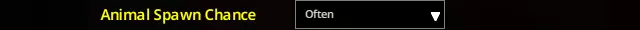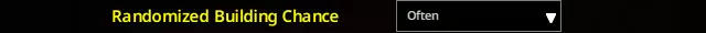 我通常倾向于“从不”选项,原因与我在B41指南中列出的相同。(游戏世界中)根本没有其他你认识的人。不过,随机的狗/狼/狐狸嚎叫以及随机的动物叫声确实非常合理,所以(我们稍后会详细讨论这一点),我尝试过这两个选项,发现它们在本指南中都有各自的适用场景。选择你喜欢的即可。 随机建筑生成概率:通常