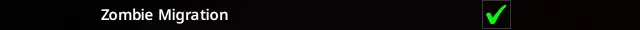 我还加入了一个来自B41设置的选项。此选项会阻止僵尸随机大量生成并静止不动(因为迁移仅在X小时后生效)。它还应该能略微提升性能,因为多个僵尸不会被限制在“领导者”的寻路路径中(未经证实,仅为个人经验,但可能有帮助)。此外,该选项也会使潜行穿过大型僵尸群变得更加困难。 战利品