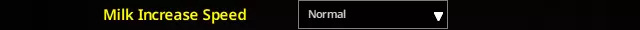 与上述推理相同,但此设置会影响游戏中的所有牲畜/动物。根据我收集到的信息,将此设置为“普通”大约相当于动物需要200个游戏日来成长。这主要与小牛成长为奶牛有关,但也适用于所有动物,使其成长速度更符合游戏友好的现实设定。此外,你也可以将此选项调整为“缓慢”,以获得更贴近真实生活的体验。 牛奶增产速度:普通