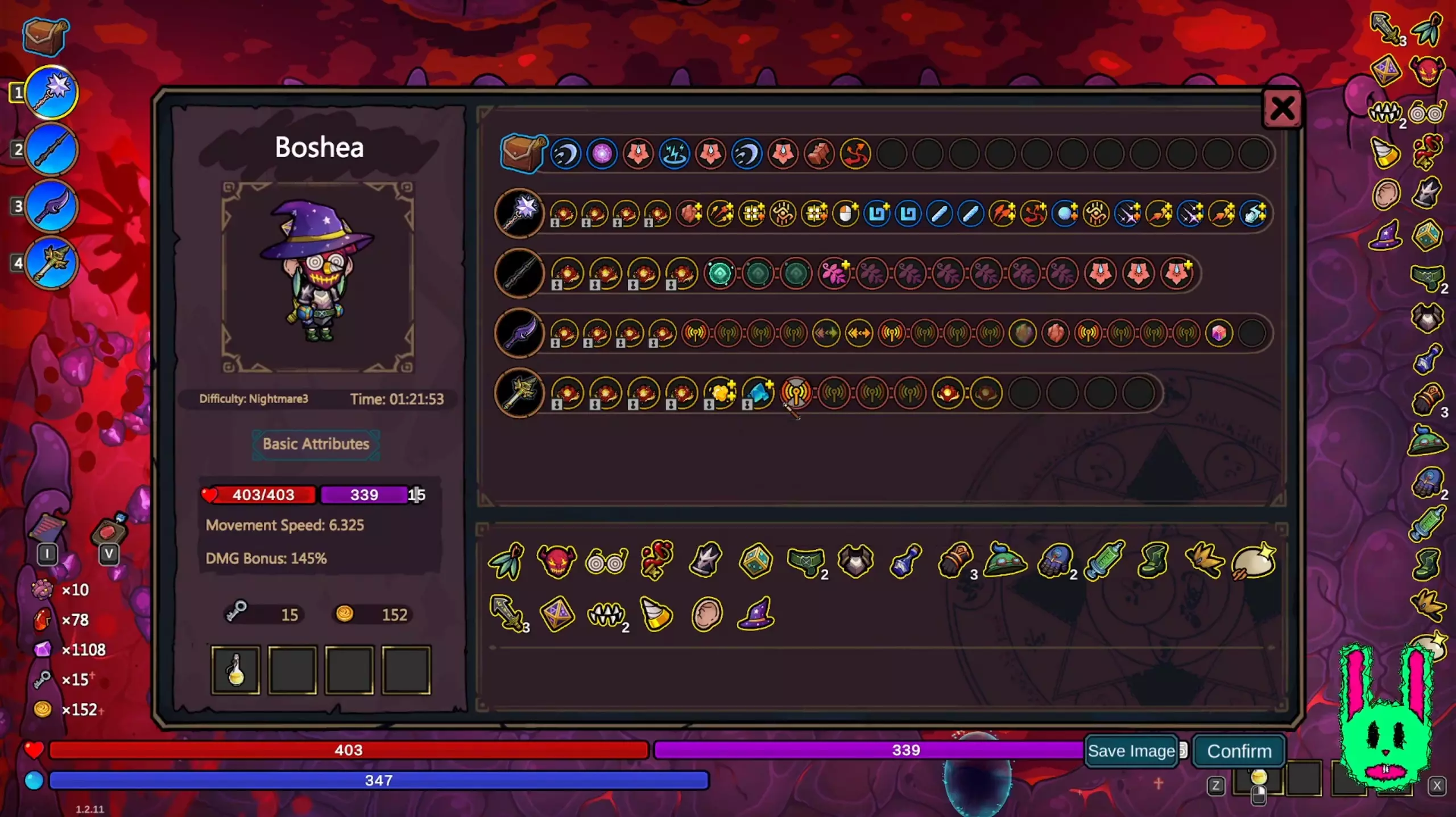 在4种圣石中,移动圣石和时间圣石是最适合围绕其构建流派的两种。站立圣石强度不错,但如果你没有达到“敌人一出现就将其秒杀”的伤害水平,使用它就会有风险,因为闪避会让你无法攻击。施法圣石的构建方式与戴夫或比恩类似,一部分能力追求极快的施法速度,而另一部分则提供实际伤害。 - 次级充能+范围强化