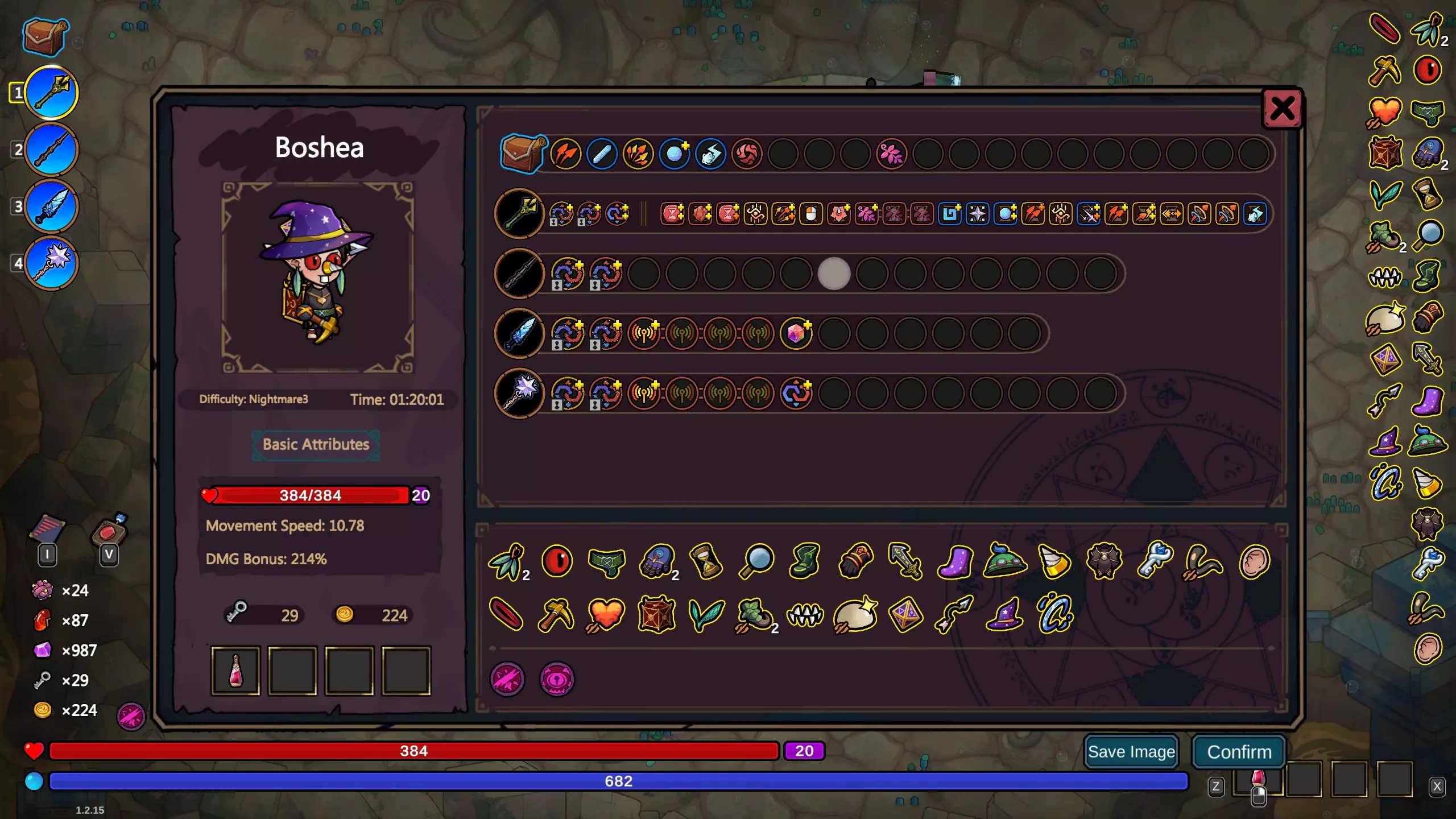 -《潜水员戴夫》 优化补丁中的明星角色,也是另一个很容易让游戏失衡的角色。戴夫的玩法与比恩类似,但你需要两把独立的法杖。你的第一把法杖应配置三重投射物,只需尽可能快速施法以恢复鱼叉充能;第二把法杖则需配备所有伤害增益效果,使鱼叉的伤害最大化。或者,你也可以像构建其他伤害连锁法术一样打造三重投射物,因为它是一个非常适合放在二重唱之后的法术,能实现多次施法并减少法杖的冷却时间。除此之外,使用戴夫时你需要更优先考虑宝箱,因为这是获取更多鱼叉遗物以进一步提升鱼叉伤害的途径。从第一个猩红房间开始,每个房间都能获得保底和/或免费宝箱,这能让你轻松用戴夫碾压过关。