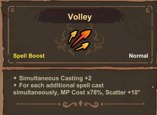 -多重射击 增加施放法术时的投射物数量。与某些弹道效果组合时不会无限连锁。“多重射击> fuse(融合)>魔法弹”和“fuse(融合)>多重射击>魔法弹”的组合会产生相同数量的魔法弹。若在序列的每个部分都添加多重射击,投射物数量将叠加:“多重射击>多重射击> fuse(融合)>魔法弹”会生成3颗魔法弹,而“多重射击> fuse(融合)>多重射击>魔法弹”则会生成4颗魔法弹。