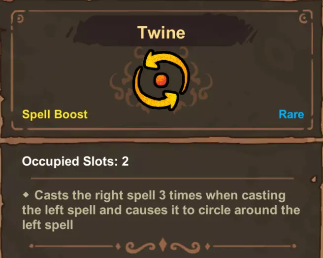 -堆叠投射物增益/被动效果 若堆叠投射物被动/增益效果,会多次释放右侧的法术。例如“魔法弹>缠绕>缠绕>魔法弹”的组合将生成6颗环绕的魔法弹。这是在法术链末尾获取多份高伤害法术的简便方法。此机制不计入“齐射”效果所需的额外法术释放次数。
