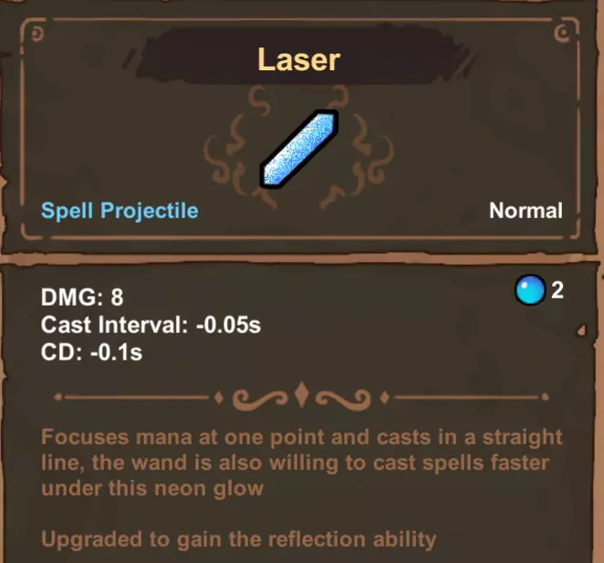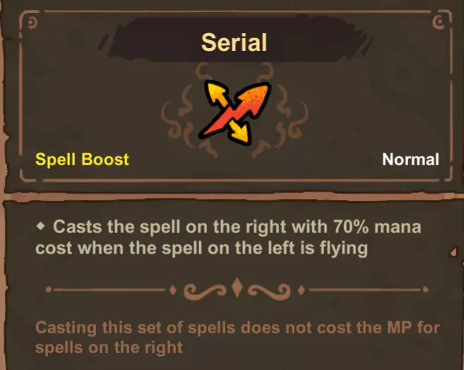 特定法术机制 以下是一些常见高阶法术的额外信息,它们可能存在一些可利用的特殊交互效果。 - **多重射击** 多重射击仅使用最高等级来计算其魔力消耗折扣。你可以叠加它以实现更多的同时施法,但多个被动效果不会提供更多的魔力值折扣。其折扣计算公式为:默认消耗×(法术折扣^(施法次数-1)) - **激光、魔力吸收、审判之剑** 这三个法术都有冷却时间减少效果。对于已经施法速度很快的法杖,它们可能是比“强制冷却”更好的选择,或者能在你的法术链中获得更高的伤害/魔力消耗减免。