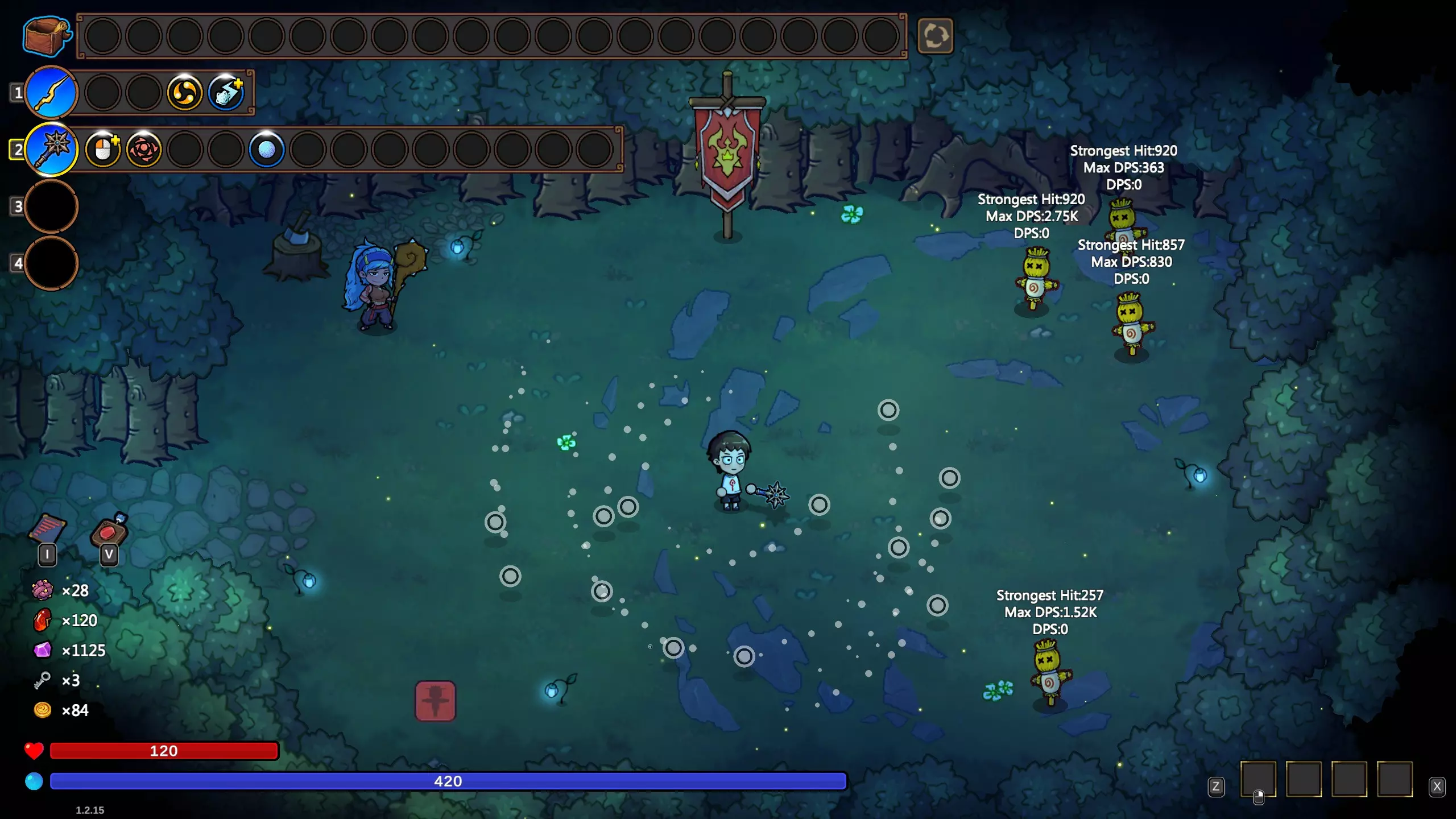 即使没有伤害被动技能,我们也能通过在法杖中填充低消耗法术,让“闪耀之星”尽可能廉价,从而达到1500-4000的每秒伤害。