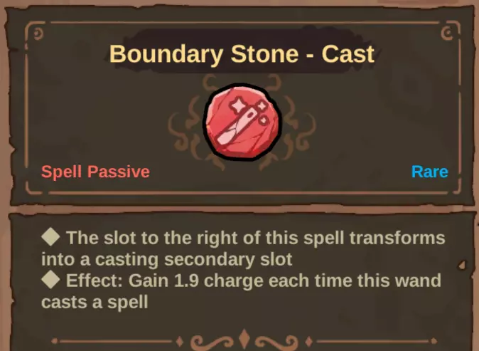 -次级充能法杖 更新前,我曾认为次级充能机制与其他大多数可稳定构建的机制相比完全是个废案。边界石套装就是对元材料的浪费,只会往你的物品池里添加4个无用法术,而且大多数次级充能法杖都不值得费心去制作。这些法杖现在依然大多很弱,但边界石本身却能让你打造出一些真正强力的法杖,其施法速度远超其他选择。