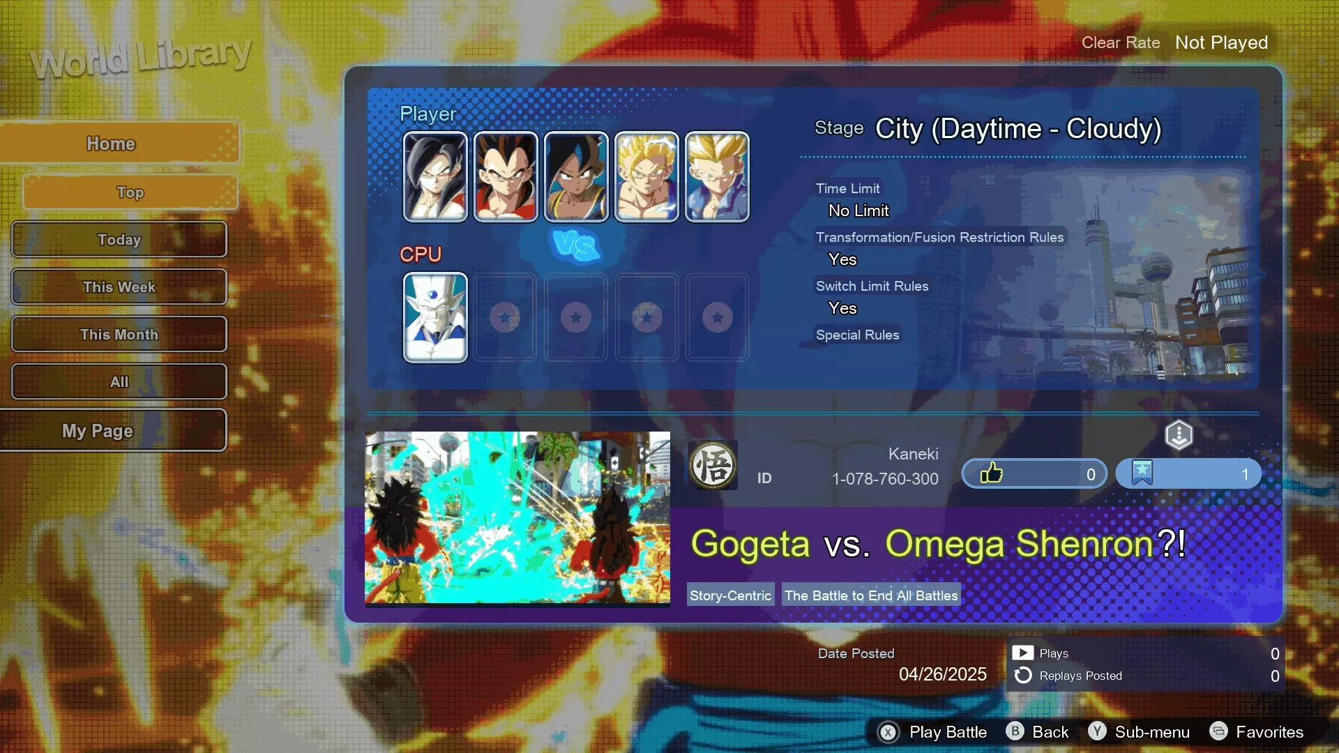 从《龙珠宝宝传奇》到《暗影龙传奇》,大多数结局都鼓励玩家进行“光束对波”!以下是全部3个章节及其ID!推荐搭配《龙珠武道会》系列原声音乐模组,但并非必需。个人另一个建议是,为了达成动画风格的结局,请耐心进行这些战斗,然后再尝试速通以获取另一条路线的结局。我个人更喜欢动画风格的路线,但也确实会为任何速通尝试提供另一条路线作为“奖励”。制作这个内容充满了乐趣,希望其他《龙珠GT》粉丝也能喜欢。最终之战的难度更高,旨在营造“终结一切的战斗”之感。如果你能变身超级赛亚人4悟吉塔,那将是值得的。大多数第二条路线都是基于计时器的,所以如果你已经达成了动画风格的结局,那么在首次通关后就可以放心尝试速通了!在GT剧情被排除在故事模式之外后,我觉得总得有人尝试去改编它。欢迎任何形式的反馈! 第一话 | 贝吉塔(幼年)等人 VS 悟空和小芳!反派方 | [ID: 1-754-737-516]