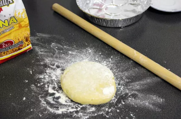 别忘了在面团上扎些小孔防止其膨胀,我们要根据形状来分配面团。