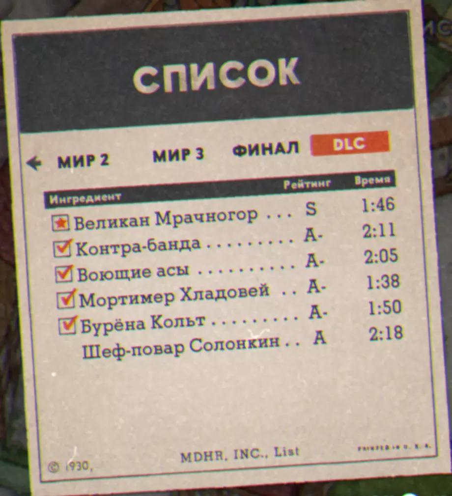 《茶杯头》美味终章 以下成就需要购买售价169卢布的付费DLC。 https://store.steampowered.com/app/1117850/Cuphead__The_Delicious_Last_Course/