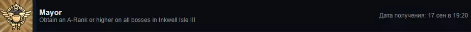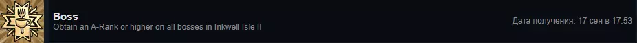 在《茶杯头》的墨池岛IV中,所有 Boss 均获得 A 级或更高评价。 击败 IV 岛所有 Boss,评价需达到 A 级或更高。 必须在“普通”难度下完成。 仅计算:A、A-、A+、S。