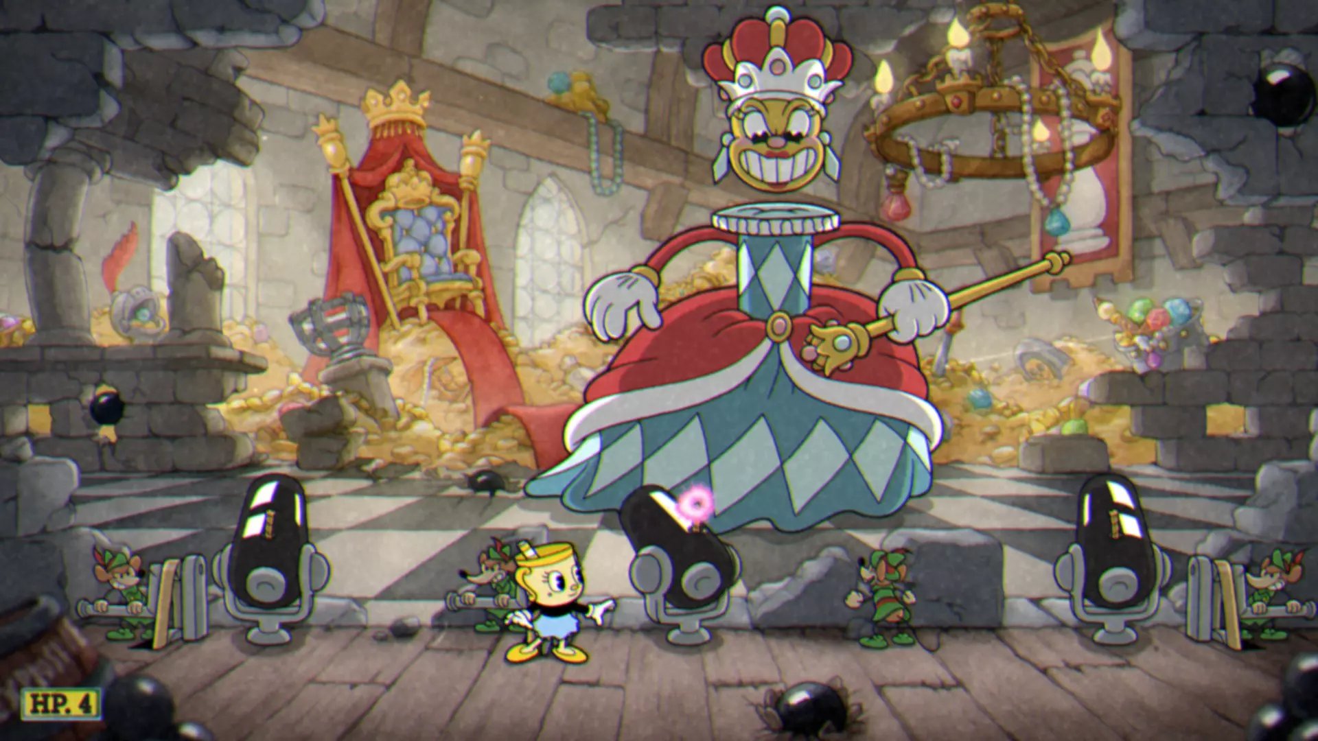 击败《游戏王》的所有冠军。 总共有5位冠军,击败他们。 带上Ms.茶杯,这会让你更容易获胜。 你所需要做的就是攻击冠军身上的粉色部位。 I. 步兵。