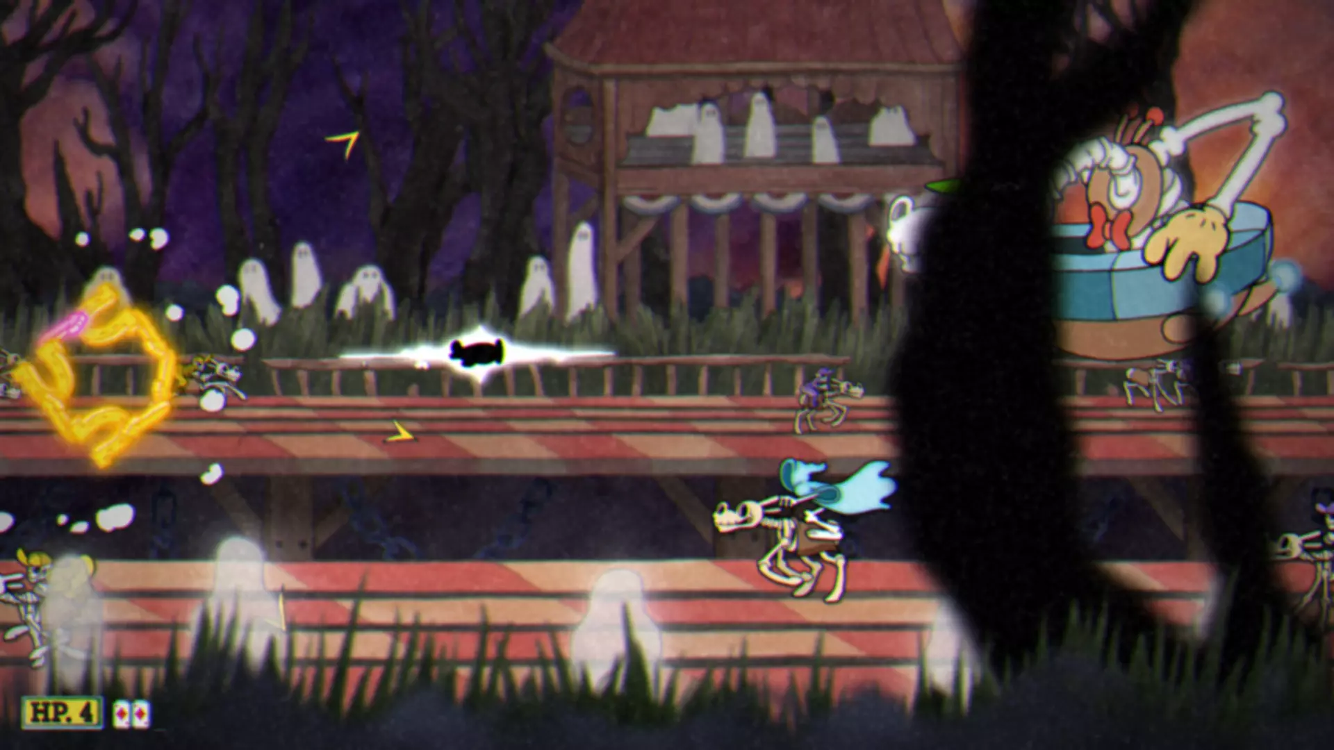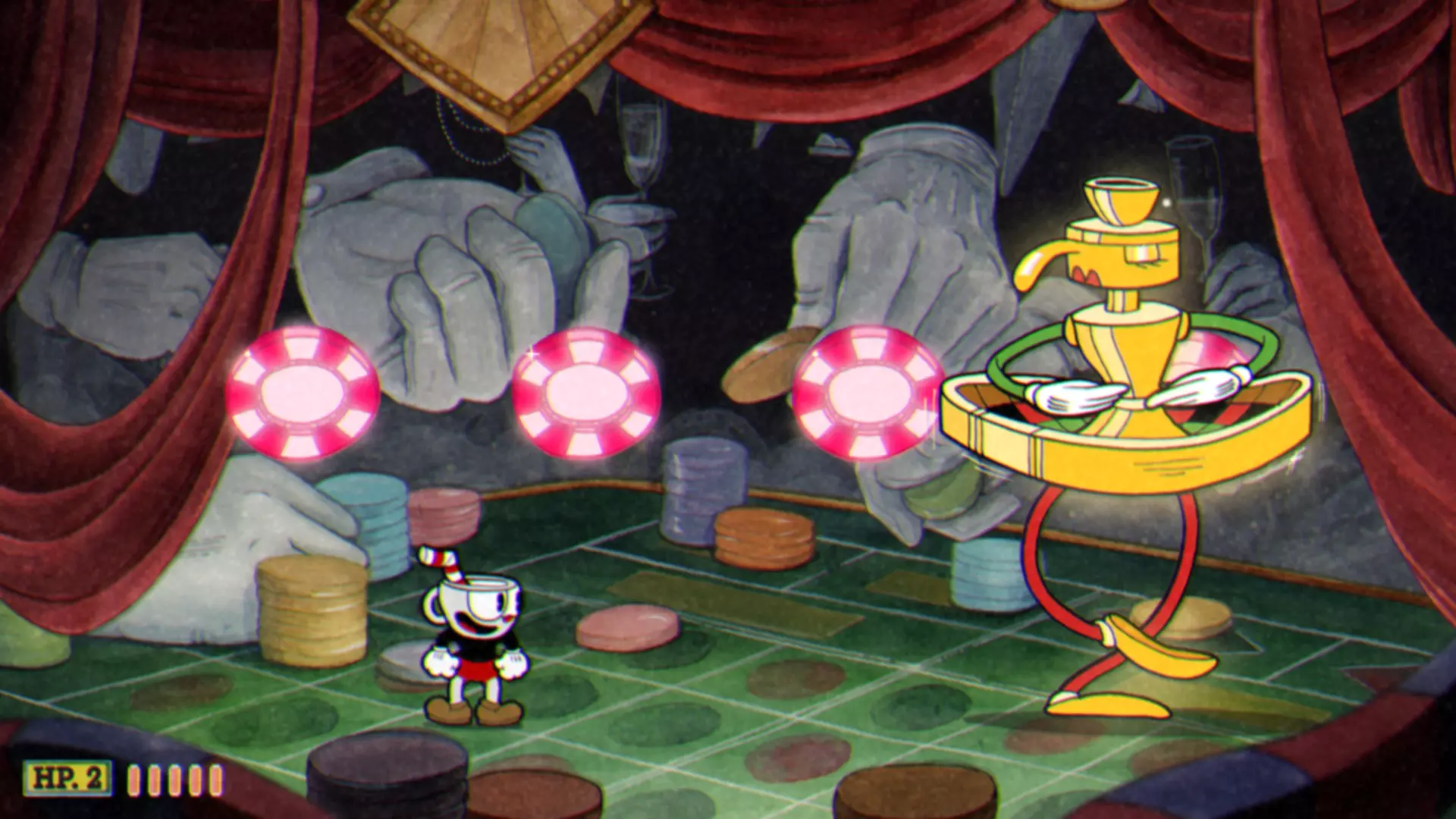 “击败皇家手套” 使用茶杯女士(Ms. Чаша)通关会更简单 在通关所有冠军后,将解锁新的“挑战(Гамбит)”模式,该模式要求你在不死亡的情况下击败所有冠军 A Horrible Night To Have a Curse