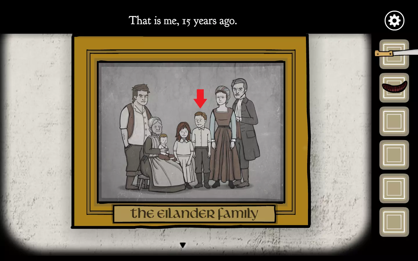 如果你不是那种对所有东西都好奇的类型,这个内容很容易错过。 一直穿过树林,直到你找到这座房子,进去后点击全家福照片。