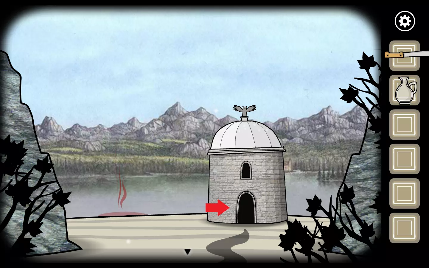 可错过内容 离开森林后,你会看到湖边有一座小建筑,进入建筑后点击大锅进行放大查看。