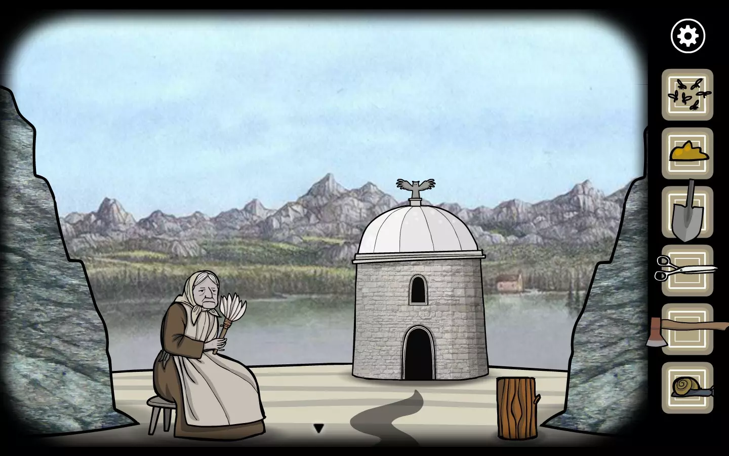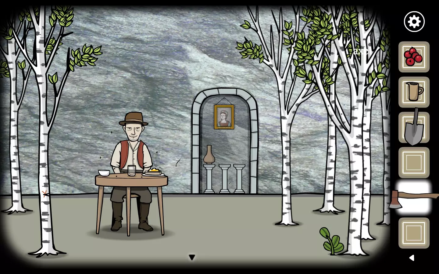 找到斧头后,前往奶奶所在的室外,点击右侧的小木头。