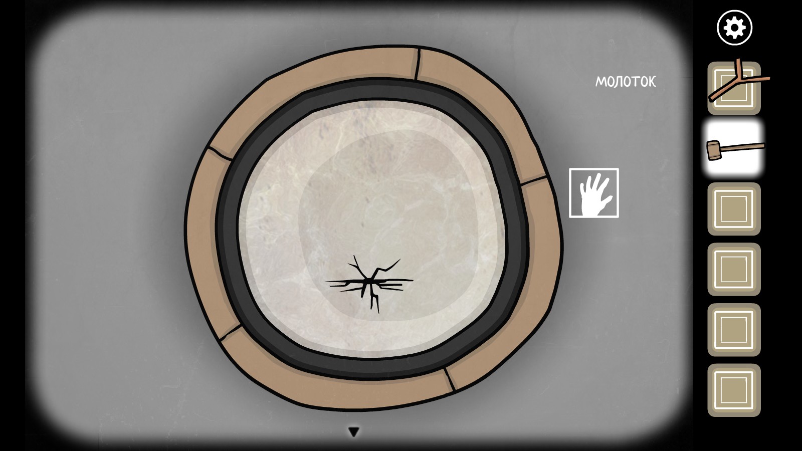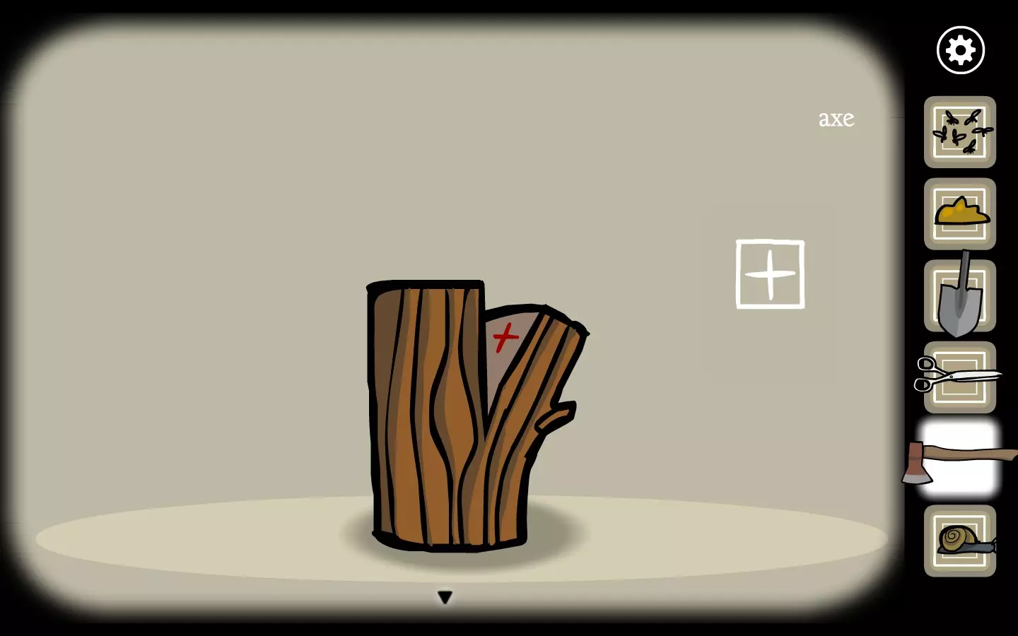 现在使用斧头并多次点击它(大约5到10次),最终它会裂开并掉落第三个符号。