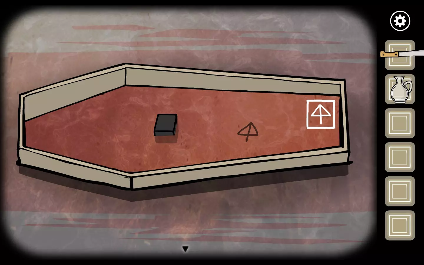 这个有点容易错过,但只要你足够留意就没问题。要推进剧情,你需要打开这个棺材(为了不剧透,我就不说这是谁的棺材了),而那个符号就在那里,就在黑色立方体的旁边。点击它就好!