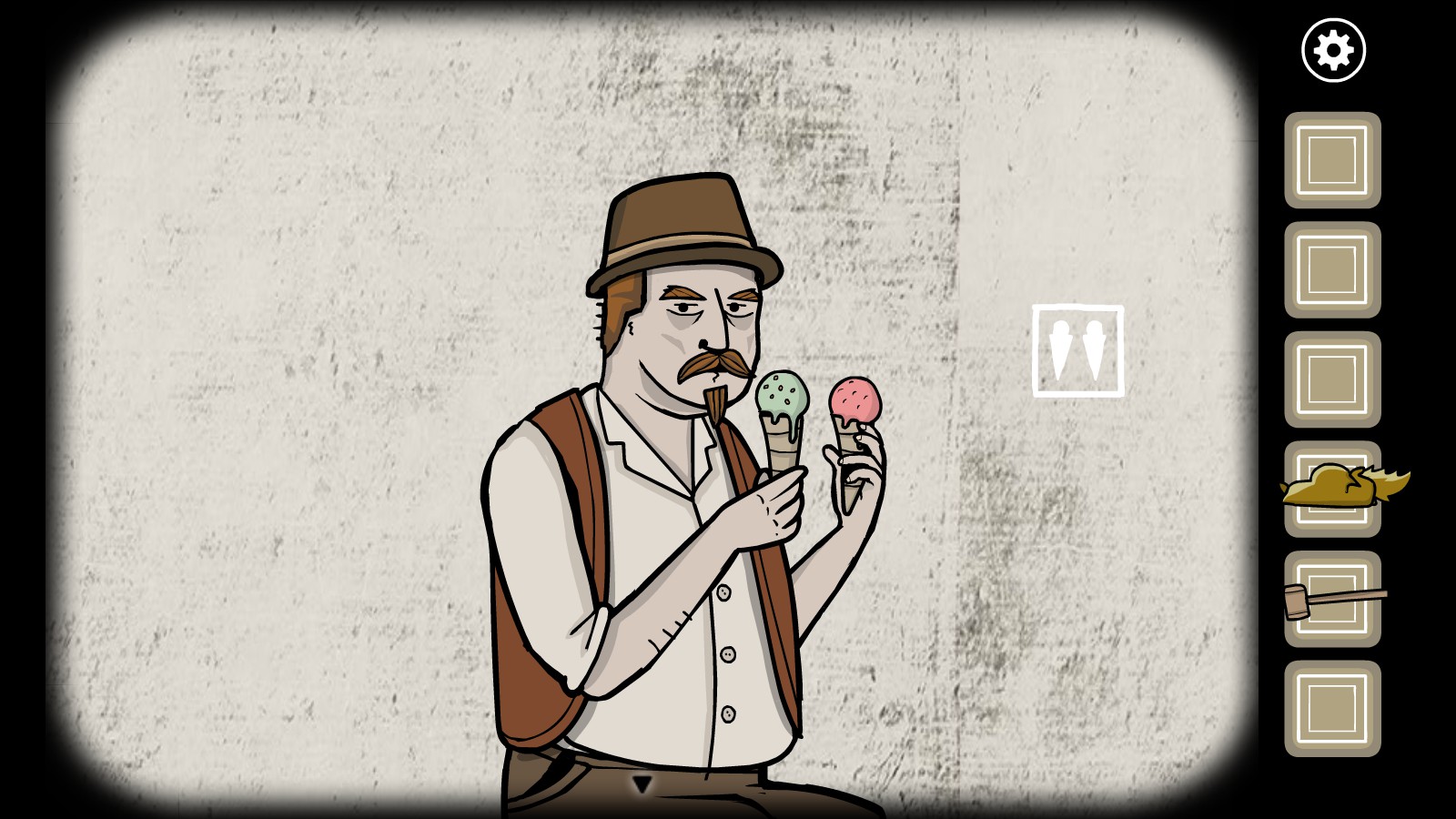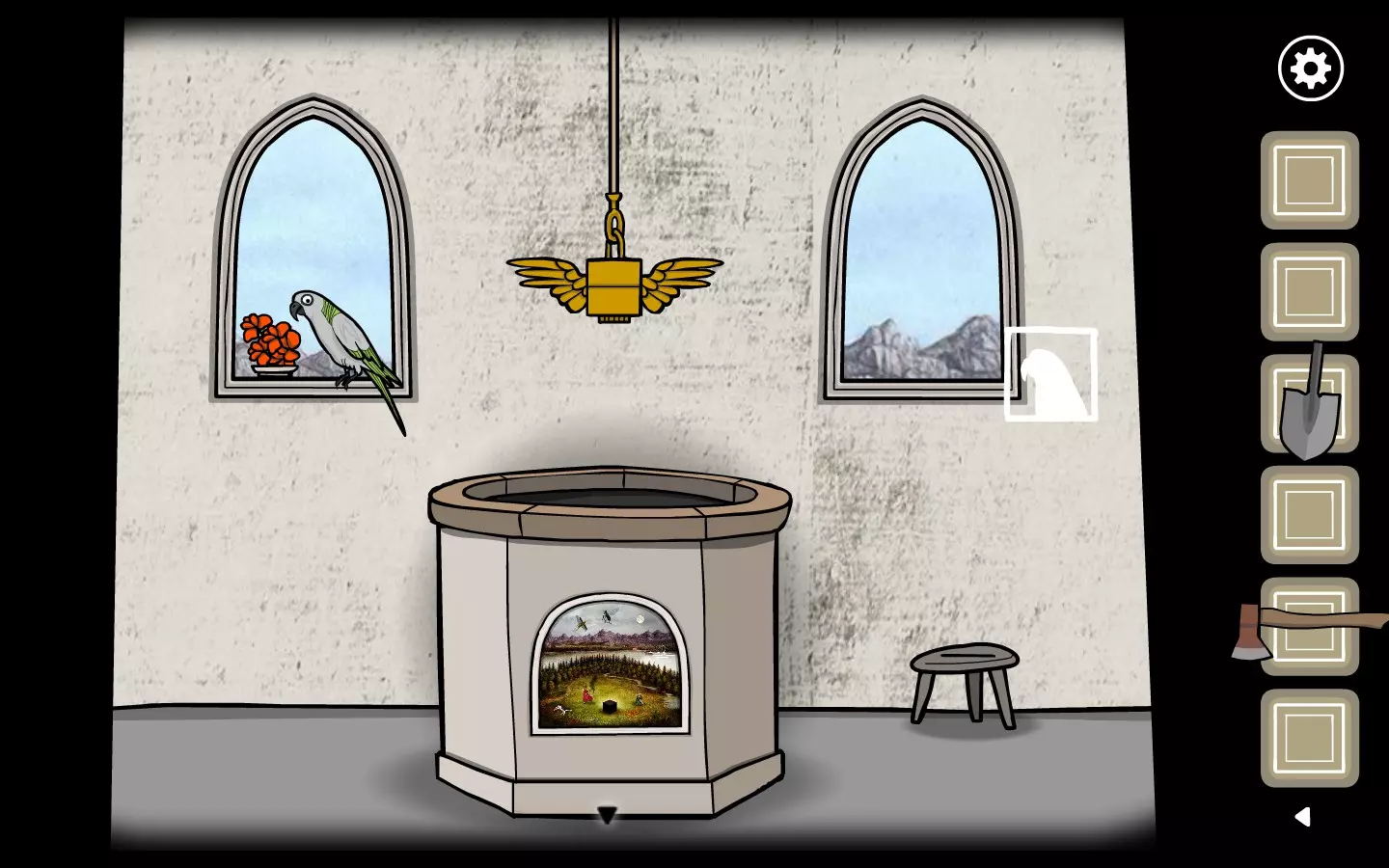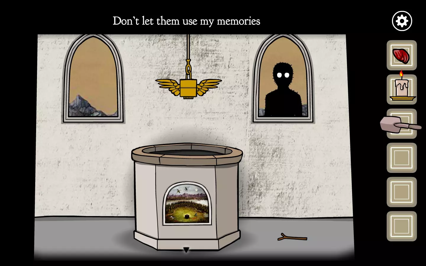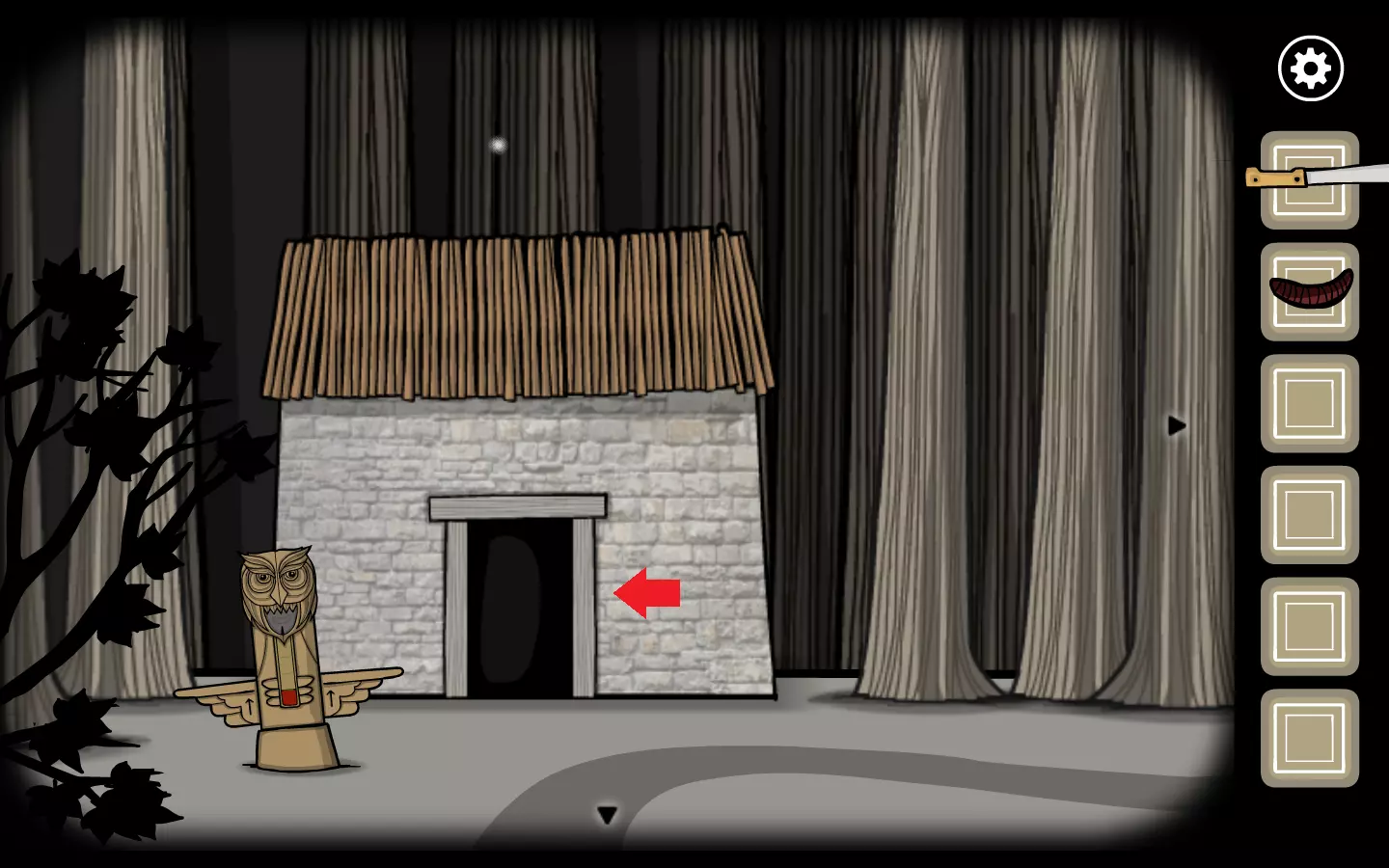 找到剪刀后,回到森林里的房子,把剪刀交给妹妹,让她帮叔叔剪头发。虽然把锋利的工具交给盲人是个糟糕的主意,但还是要这么做。持续点击叔叔的头发,直到妹妹最终剪下他的耳朵。点击耳朵即可获得成就。这也是剧情相关的内容,因为你需要用这只耳朵来解决另一个谜题。