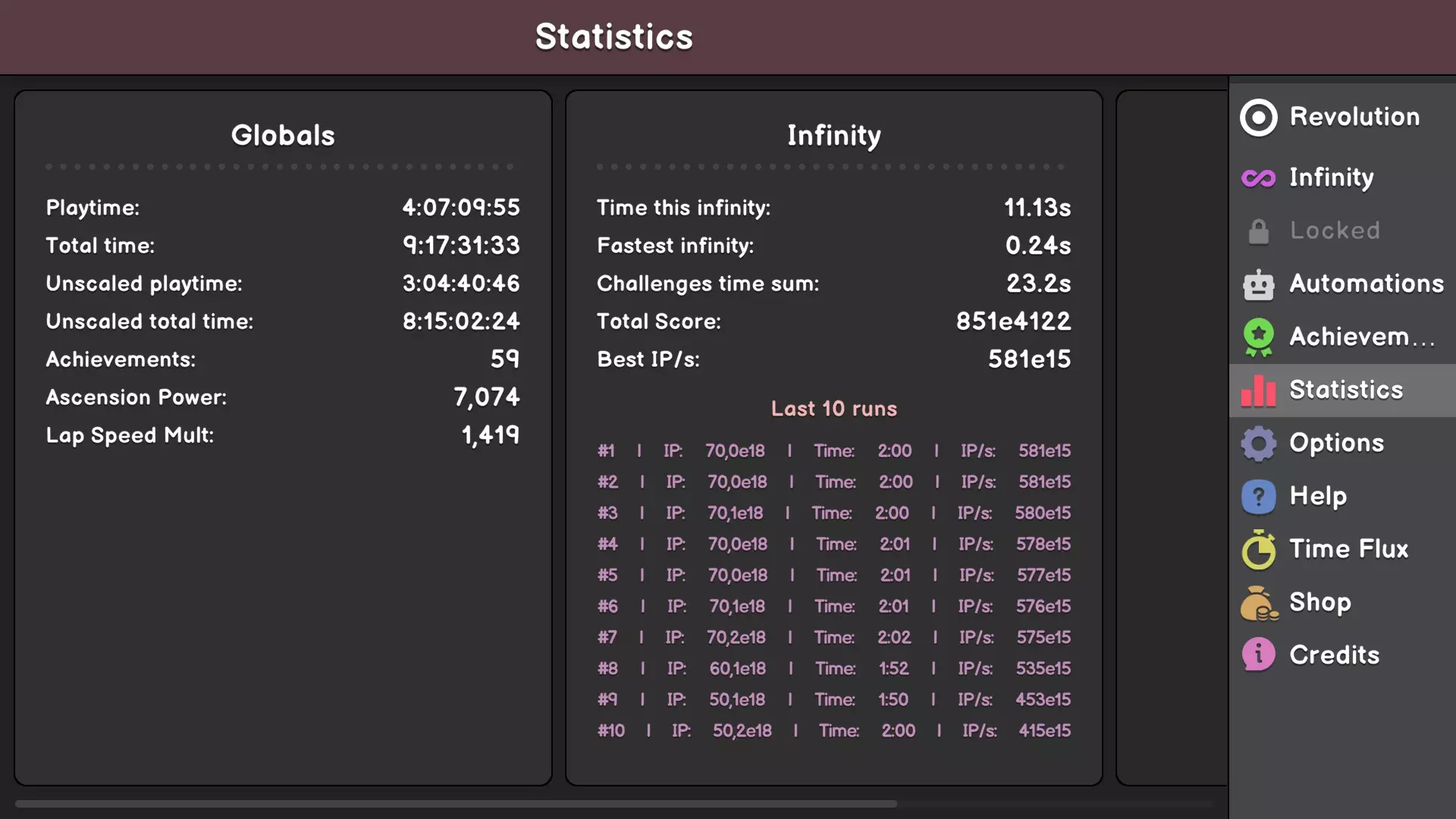 无限点数 farming 自动化设置 这是我正在使用的设置。你唯一需要更改的数字是你目标的无限点数数量。 我追求的是大约2分钟的运行时间。因此,如果每次运行的时间缩短,我就会增加无限点数的目标值。 自动化设置