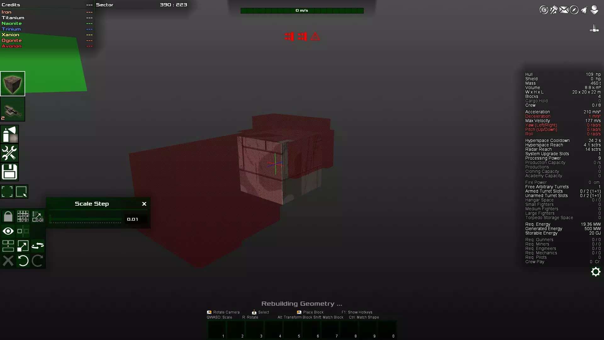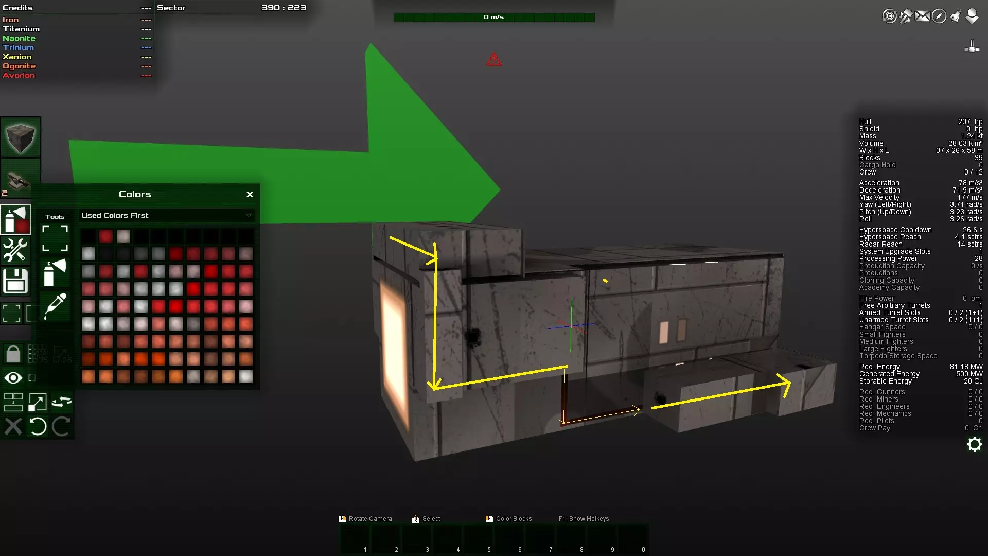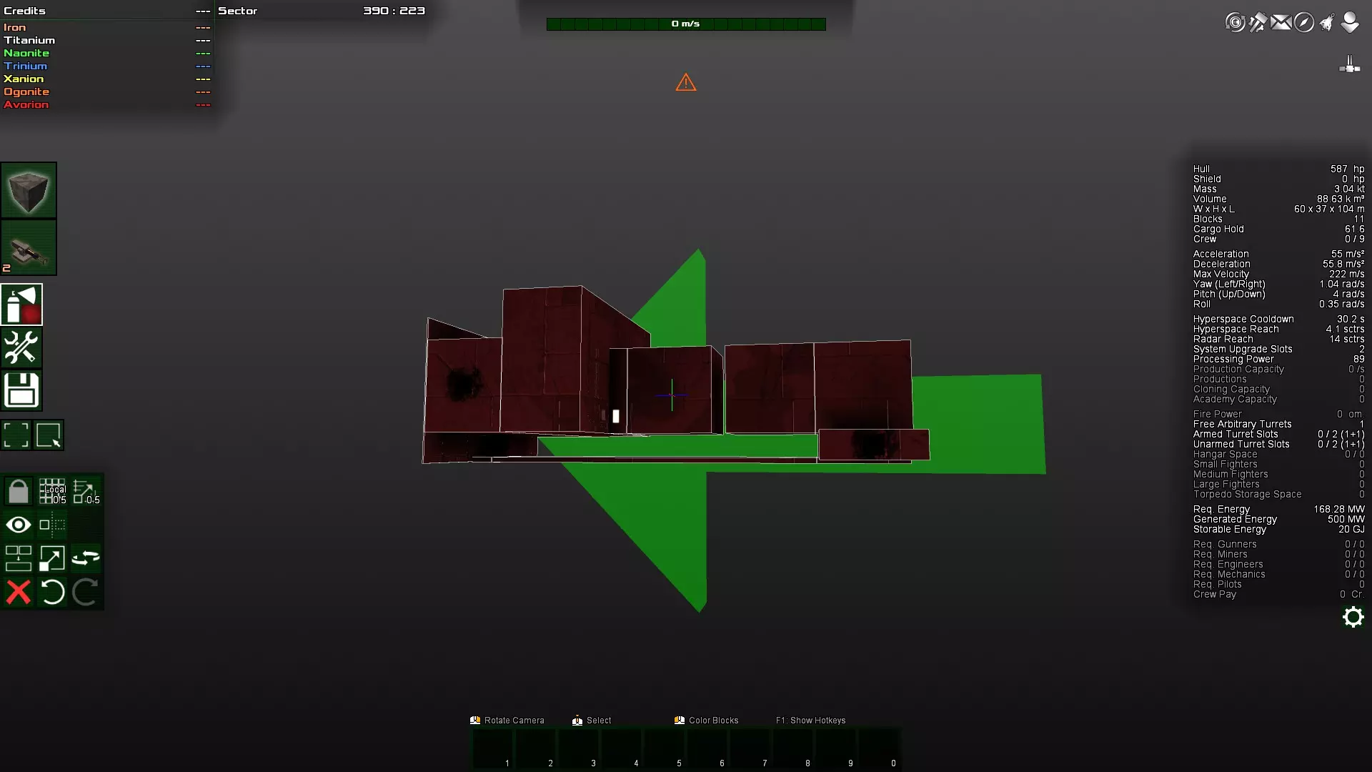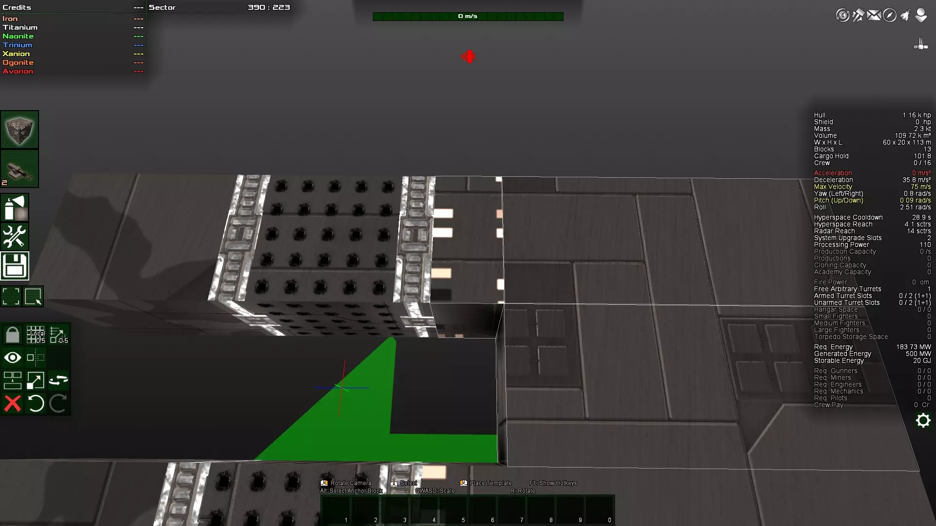 如你所见,那个角块变得多余了,因为对角块实际上是相互连接的。因此,这个角块很容易被打掉,因为它不受机械结构的保护。如果不确定,可以在安全模式下尝试删除该方块。如果可以删除,那么它就不是连接的必要部分,因此算作与主体结构分离的独立连接部分,很容易被摧毁。 接下来,将两个装甲块都放在前面仍然不太好。更理想的做法是将装甲块放在飞船的中部,因为那里的转动惯量最小。