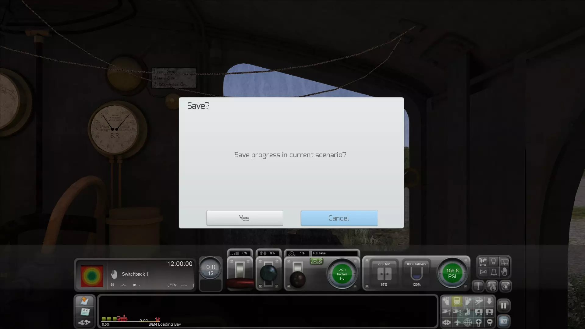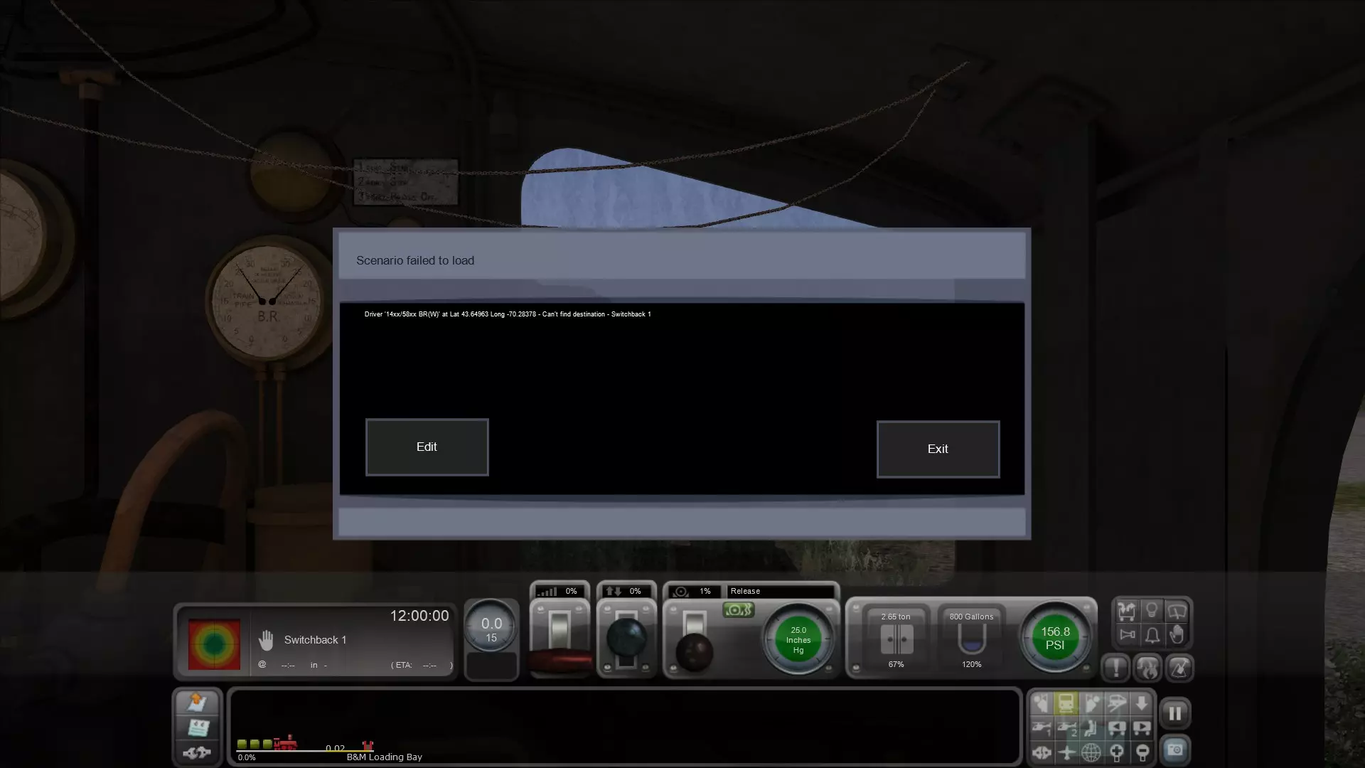 这可能是快速驾驶模式出错,或者是路线中存在你库中没有的场景物品或铁路车辆导致的。 消息框会提供两个选项——编辑或退出。 诀窍是两者都不要选。只需按F2键(就像你尝试保存场景时那样)。你会看到以下内容: