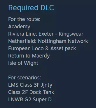 This will list your subscribed items in default order of 'Date Subscribed.' You can change this to list them 'Alphabetically' or in order of 'Date Updated' or 'Date Created.' Each item can be rated up or down, or added to your 'Favorites.' You can unsubscribe to each individually by unticking the 'Subscribed" box. If you wish, you can even unsubscribe to all workshop items at once by clicking the "Unsubscribe From All" button in the upper right dialogue box. Deleting an Item There are two important steps involved in deleting a Workshop item from your game. Unsubscribe from the item, either in game or from the Workshop online. Delete the item via the in game Build menuPlease note: By unsubscribing, you merely disable the "update overwrite" function. The item itself will remain installed and playable in your copy of the game. So if you wish to delete the item, first of all unsubscribe from it and then delete it. To delete, go to the Build menu. If it is a scenario, select the Scenarios tab, then from the list choose the route which the scenario relates to and find and delete the scenario from its individual list. If it is a route, select the Routes tab, then from the list select the route and delete it from the list. Keyboard Controls The official manuals are very thorough in listing which keyboard controls are appropriate for any given route or locomotive, but there is a handy list of controls which covers most situations. The guide was written in 2015, but is still very useful. https://steamcommunity.com/sharedfiles/filedetails/?id=243521602 Click here to open the above guide in a new window For convenience, I am placing the main keyboard controls here - with thanks to morrelo Train Motion Controls A - Throttle/Regulator UP D - Throttle/Regulator DOWN W - Reverser UP S - Reverser DOWN E - Gear UP Shift+E - Gear DOWN ' - Train Brake UP ; - Train Brake DOWN ] - Loco Brake UP [ - Loco Brake DOWN . - Dynamic Brake UP , - Dynamic Brake DOWN / - Handbrake toggle Backspace - Emergency brake Additional Steam Locomotive Controls J - Small ejector on/off C - Cylinder valves on/off F, Shift+F - Open/close the locomotive fire box R, Shift+R - Increase/reduce the rate the fireman shovels coal I - Turn on/off the live steam injector K, Shift+K - Increase/reduce flow of steam to the live injector O - Turn on/off exhaust injector L, Shift+L - Increase/reduce flow of steam to the exhaust injector N, Shift+N - Increase/reduce blower M, Shift+M - Increase/reduce damper Train Equipment Controls T, Shift+T - Open doors/Load/Unload/Refuel (depens on your train and position) H, Shift+H - Headlights cycle J - Secondary lights (some locos) K - Tertiary lights (some locos) L - Cab lights toggle V - Windscreen wipers ON Shift+V - Windscreen wipers OFF U - Blinds/glare panels toggle Z - Engine toggle start/stop P - Pantograph UP Shift+P - Pantograph DOWN Q - Alerter CANCEL C - Guard Acknowledge (non-steam locos) K - DRA toggle X - Sander toggle Space, Shift+Space - Horn (high/low) B - Bell Train Task Controls Tab - Red Signal request permission to pass AHEAD Tab, Ctrl+Tab - Red Signal request permission to pass BEHIND G - Points (junction switch) change AHEAD Shift+G - Points (junction switch) change BEHIND Ctrl+Shift+C - Couple/uncouple rolling stock T, Shift+T - Open doors/Load/Unload/Refuel (depends on your train and position) Ctrl+-, Ctrl+= - Change cab Train Views 1 - Cab view 2 - External front camera Shift+2 - Head-out-of-cab camera 3 - External back camera 4 - Trackside camera 5 - Passenger view 6 - Front coupling camera 7 - Overhead camera 8 - Exploration (free) camera 9 - Toggle 2D map Left arrow, Right arrow - Alternative cameras for the current view Ctrl+, Shift+, Arrow keys, Mouse scroll wheel, Holding RMB - Various options for adjusting your view Other Controls Esc - Pause menu Pause/Break - Pause game without showing pause menu Ctrl+Q - Quit menu Ctrl+E - Enter world editor F1 - Task info F2 - Save menu F3 - Small HUD (ON/OFF) F4 - Full HUD (ON/OFF) F5 - Technical HUD F6 - Toggle labels F7 - Toggle rail vehicle number F8 - Toggle destination overlay F9/Shift+F9 - Reload assets Shift+Z - Show framerate Ctrl+S/F12 - Take screenshot Ctrl+Shift+1, Ctrl+Shift+2 - Increase/decrease braking difficulty Conclusion Do not be afraid of taking full advantage of the Steam Workshop. It exists with the aim of unlocking the full potential of the game to give you limitless enjoyment. The workshop is a virtual treasure trove of user-created content, and with over 30 thousand items on the menu it is a veritable feast - so get stuck in and enjoy the meal. Have fun!