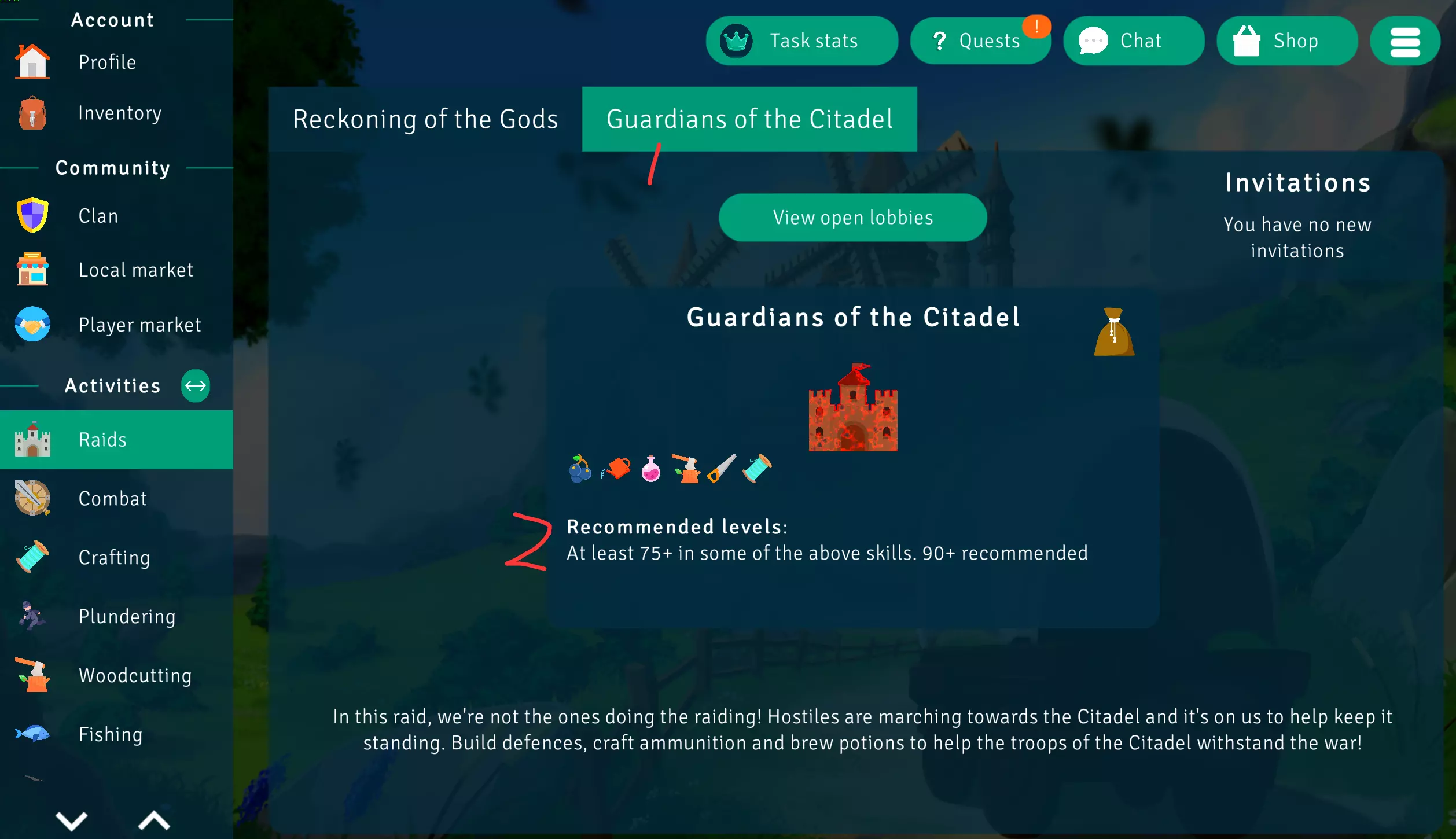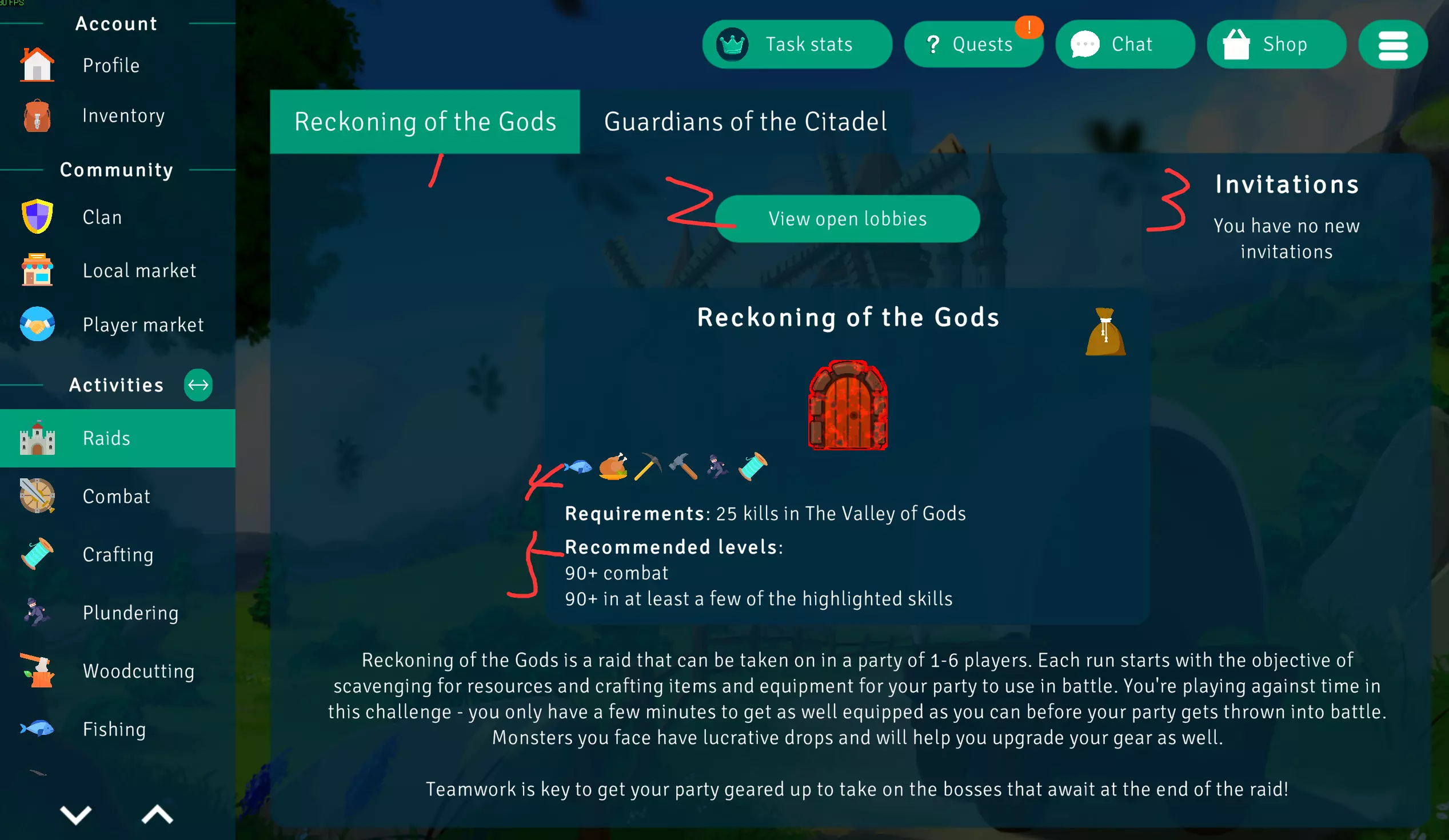 1. 扫荡名称 2. 查找公开房间 3. 邀请 4. 要求:在众神之谷击杀25次 5. 建议等级:90级以上 至少有几个图示技能达到90级以上