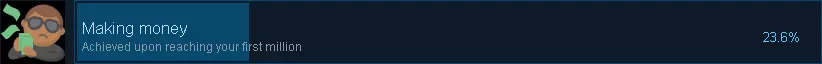 第一次获得十亿后解锁 你必须实际拥有十亿才能获得此成就,并非累计达成 通过经常参与突袭(raids)可以快速获取大量金钱,但需要运气 行为成就1.Getting started
