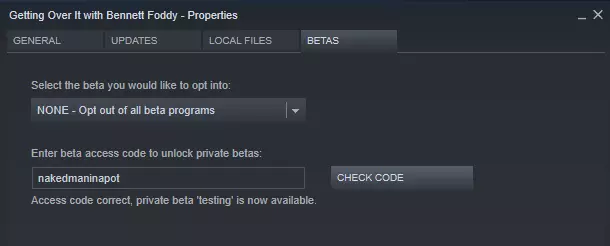 输入测试版访问代码“nakedmaninapot”并点击“Check Code”以解锁旧版本。解锁后,你可以通过打开第一个列表,在“Select the beta you would like to opt into”下方找到这些旧版本。 安装游戏性模组 顾名思义,这类模组会影响游戏的运行方式。因此,安装此类模组时,你需要替换游戏正常运行所使用的代码。