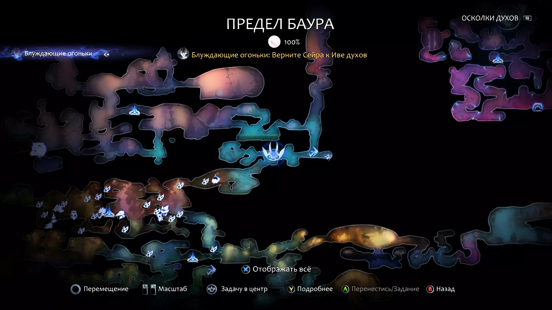奥日受到伤害后会保持在受伤状态,不再受到更多伤害(可能需要多试几次才能成功!)。走到两个悬挂的史莱姆之间的边缘附近,然后让游戏挂着30到50分钟。这样就能获得大量“灵魂之光”,之后就可以开心地去购买剩余的升级和技能了。 就这样。 很简单。结束。