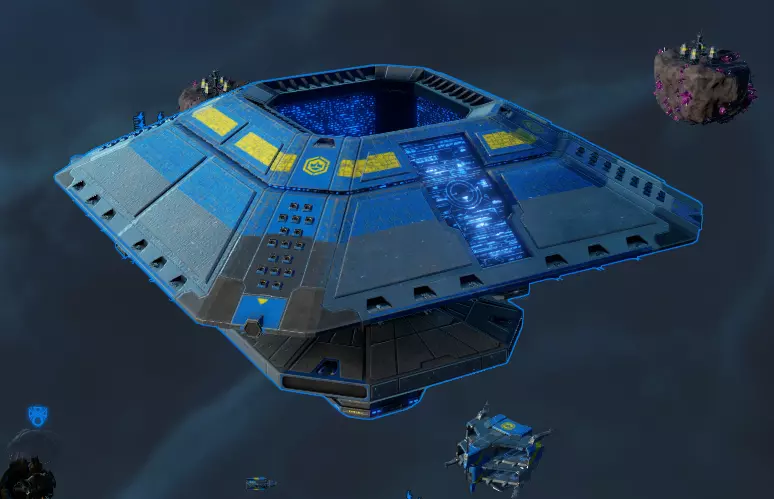 一个星港最多可容纳8个模块,其亮点在于这些模块会改变星港自身的外观。不只是武器模块——大多数模块都能直观地看到。我个人最喜欢的是对接臂。 以下是未配备对接臂的星港: