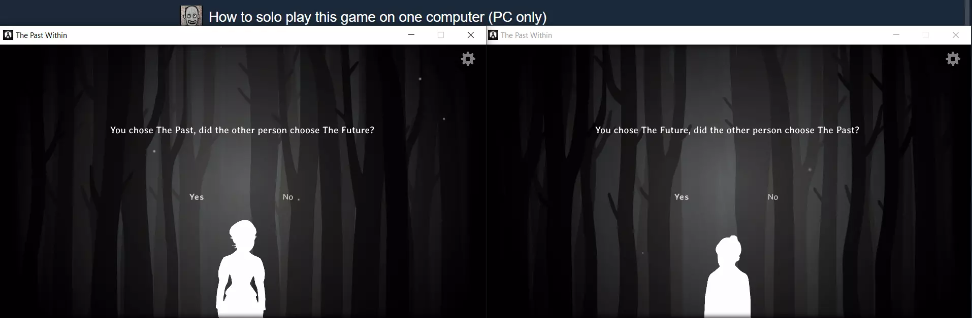 请确保在一个窗口中扮演过去,另一个窗口中扮演未来。同时,务必在两个窗口中选择相同的谜题设置(蝴蝶或蜜蜂)。 当在一个窗口中进行游戏时,另一个窗口会暂停。因此,限时谜题会更容易完成。 希望本指南能有所帮助。但再次强调,我更希望你永远不必使用它。