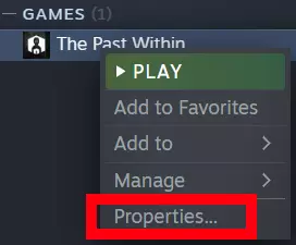 步骤2:设置游戏的第二个窗口版本。 现在返回你的Steam库,右键点击游戏《往事之间》,在下拉菜单中选择“属性”。