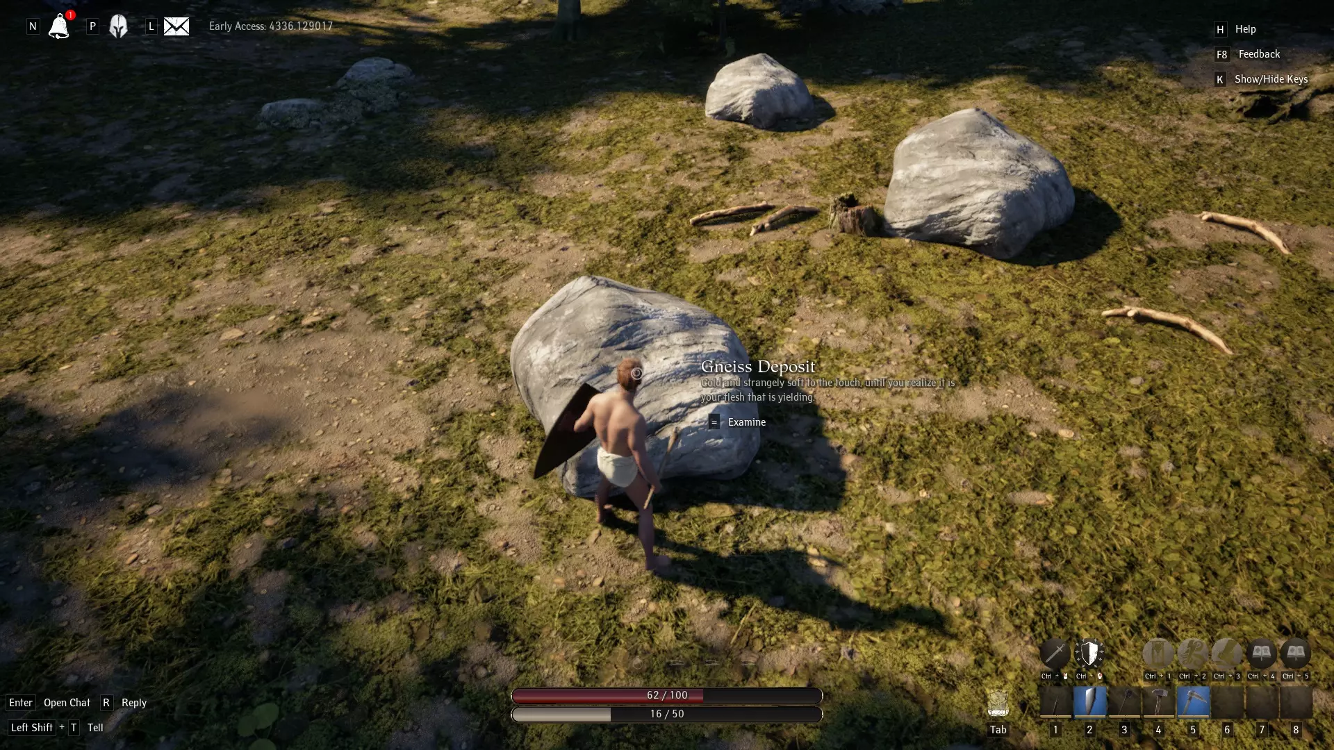 新手玩家与单人玩家指南:刷级方法及《Pax Dei》Discord常见问题解答合集 免责声明 我会根据Discord上出现的问题不断补充本指南。这份指南是我花了一个小时匆匆写就,用于帮助Discord上的某位玩家。因此,若有任何疏漏之处,请告知我以便修正。更新过程可能相对缓慢,若未能及时更新,敬请谅解。 在此期间,如需更多信息,请访问:https://paxdei.gaming.tools 如需交互式地图,请访问:https://paxdei.th.gl/ 新手指南第一章:欢迎来到《Pax Dei》! 您已购买抢先体验版并进入游戏。不幸的是,除了花一个小时打造你那非常性感的角色形象外,我敢肯定你对这款游戏的玩法一无所知!不过别担心!我会尽我所能一步步帮你。 让我们从最基础的开始。看到这块仿佛直接从斯坦利·库布里克电影里搬出来的宏伟巨石了吗?