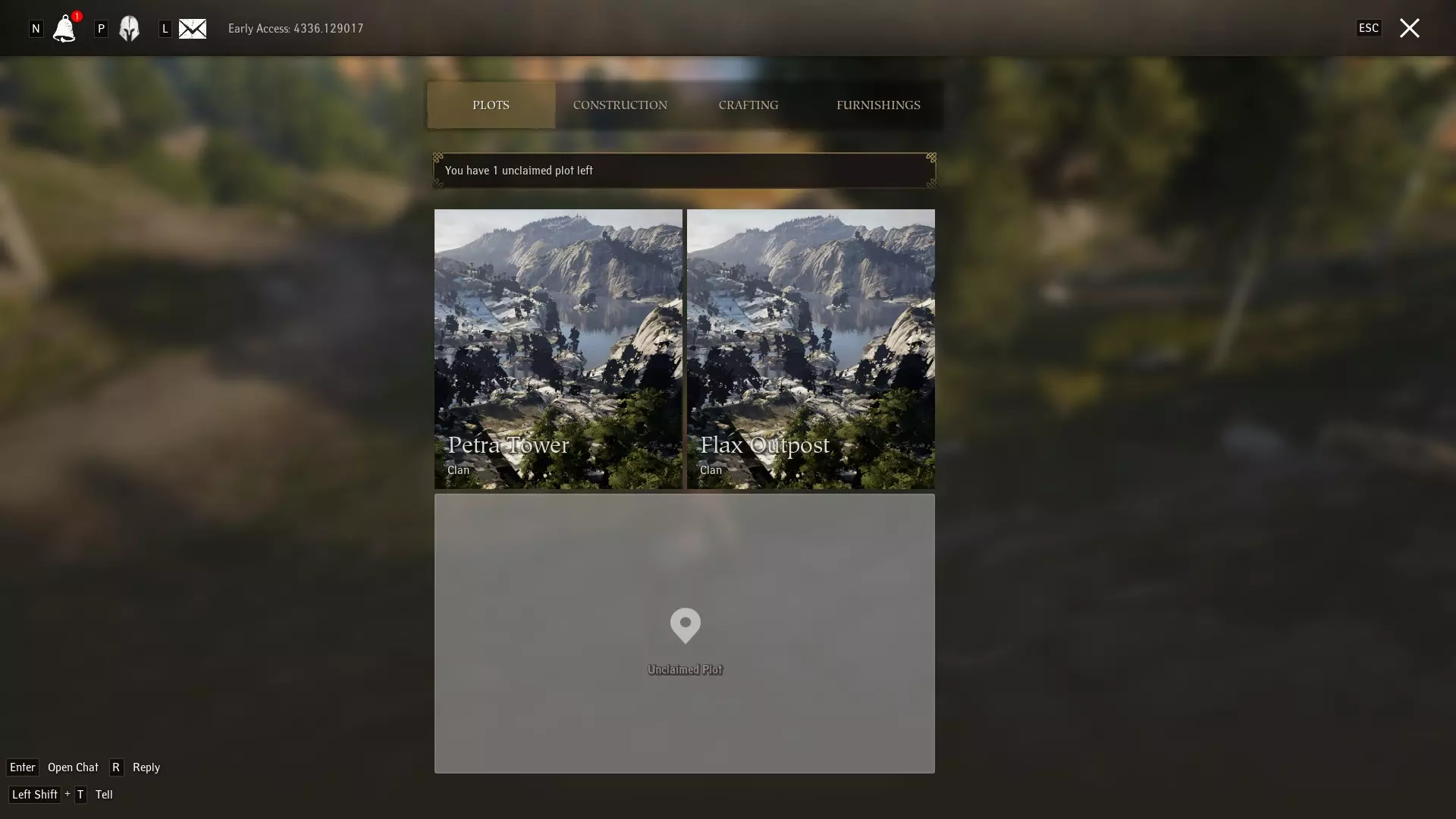 在地块界面选择“未认领地块”,然后四处寻找,直到找到高亮显示为蓝色的位置。橙色表示无法放置,通常是因为靠近他人的地块、附近有道路,有时他人的物品也会阻碍你放置地块。