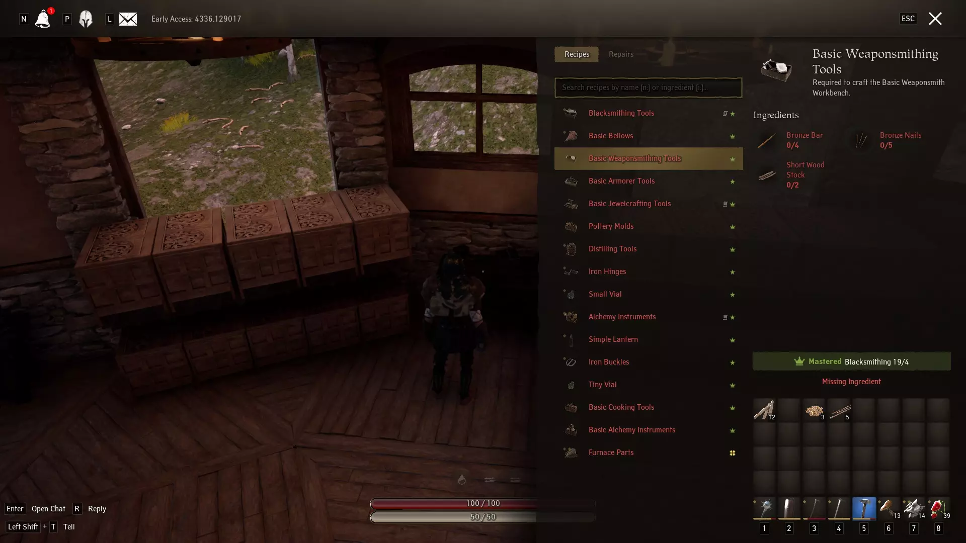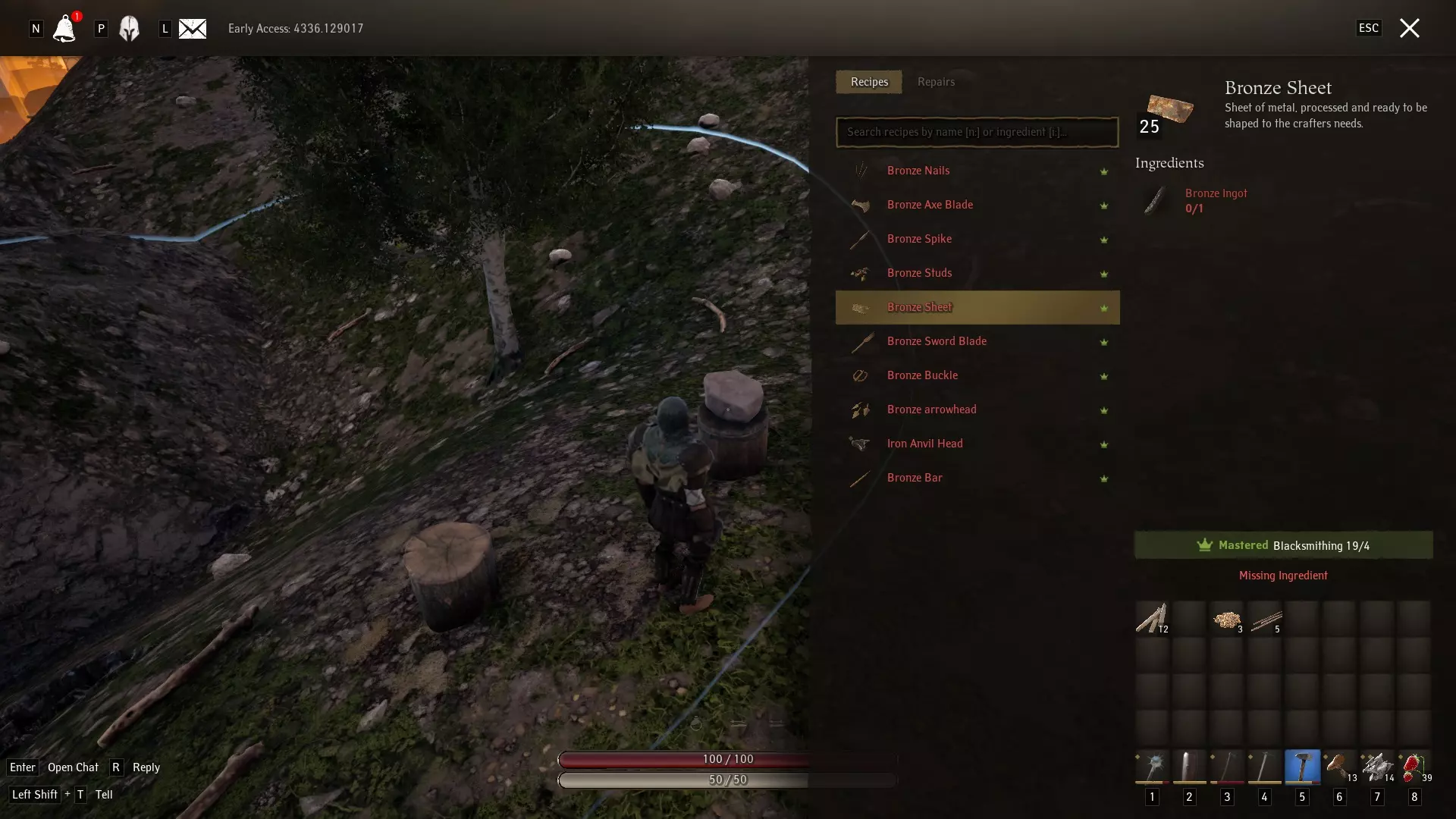 使用这座石砧,在你制作出青铜锭后,就可以继续制作青铜棒,然后用青铜棒打造青铜钉子。别忘了还要制作一叠青铜板,以完成你的基础铁匠工作台。