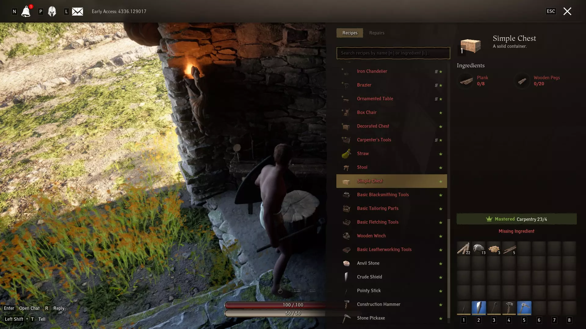 《Pax Dei》中的制作系统完全取决于你的技能。例如,制作木板的要求是“4级木工技能”——如果你刚开始时木工技能为1级,这可能会非常困难,并且会导致大量失败。不过别担心!你最终会提升技能,届时制作所需物品将变得非常容易!在《Pax Dei》中,坚持不懈是成功的关键。