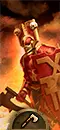 杰洛特·科恩。一个红皮肤的印第安人,脑袋形状十分怪异。色孽在某处窃笑,但不必在意。他使用双手剑造成火焰魔法伤害,能轻松穿透盔甲,总之能把步兵砍成碎片。他有三个 locus bite(原词)可供选择:伤害、攻击或魔法防御。此外,他不知从哪弄来了“血腥王座”的驾驶执照,但内心深处仍是个步行者。