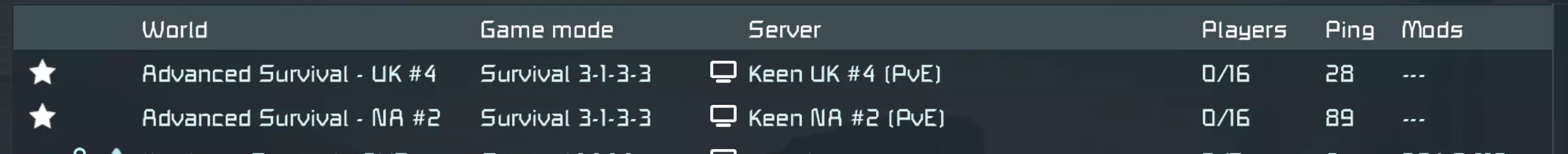 官方服务器 1. **新增面向硬核玩家的欧盟及北美硬核生存服务器**(最高生存难度设置,真实音效) - 硬核生存 - EUC #1(185.206.148.104:27016) - 硬核生存 - NA #1(74.50.65.214:27016) 2. **新增英国及北美PvE生存服务器** - 高级生存 - NA #2(PvE)(74.50.65.214:27017) - 高级生存 - UK #4(PvE)(185.206.148.104:27018)