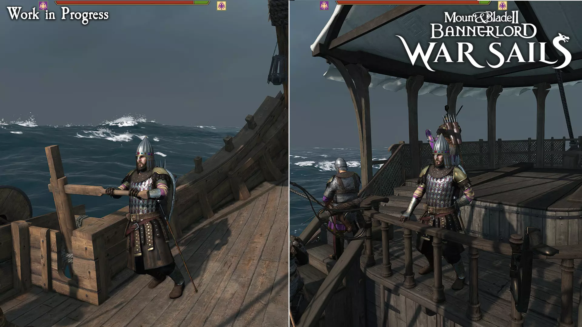 ### 游泳与攀爬 战斗中可以 commandeer(强占)敌方船只——放弃初始船体,清理敌方甲板,夺取船舵,然后在新船上继续战斗。当己方船只受损严重无法继续战斗,或缺少撞角、弩炮等能扭转战局的升级部件时,这一操作可能至关重要。 ### 背水一战 源源不断的部队是战斗持续的关键,而这正是援军系统的作用所在。每艘船都有独立的援军机制,具体取决于其自身属性。 船只的“甲板容量”决定了甲板上可同时战斗的部队数量。大多数船只的“最大容量”与“甲板容量”数值一致,但有些船只的船员总数多于甲板可容纳的战斗人数。这些额外的士兵会留在甲板下方,随时准备接替阵亡者的位置。随着伤亡人数增加,他们会生成并投入战斗,确保甲板始终有人操控。如果舰船的士气崩溃,即便船体仍能漂浮,这些增援也会停止到来。 胜利可通过以下两种方式达成,以先实现者为准:一是摧毁所有敌方舰船(即便仍有幸存者在水中),二是消灭所有敌方士兵。 你和盟友或许能够将被击败的舰船作为战利品缴获,将其加入你的舰队。你的技能、特长以及被捕获船体的状况,将决定哪些舰船可以被带走,哪些只能被遗弃在深海之中。 我们对《战争之帆》即将上线感到非常激动,迫不及待想与你一同扬帆起航。现在将其加入愿望单,关注我们的社交媒体频道以获取开发者更新,并在发售之时准备扬帆起航。
