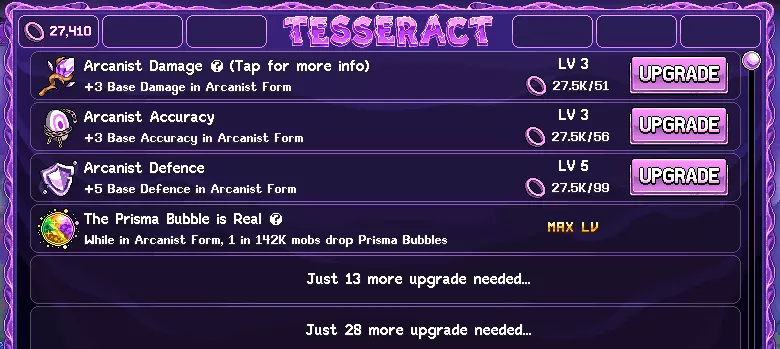 • **新增职业:奥术教徒!** 通过在世界6与马斯特里厄斯对话,可在你的瘟疫召唤者处解锁该职业。 • **为奥术教徒新增15个天赋**,包括“奥术师形态”“超立方体”和“奥术水晶”。 • 在“奥术师形态”下,你必须解除每张地图上的奥术屏障才能继续前进。 • 收集快子可升级“超立方体”,该天赋将提供58种全新加成! • 召唤“奥术水晶”可培育永久性的“地图绑定”加成,提升经验值、掉落率和离线收益! • 现在你可以离线挂机风行者了——只需先收集1000个以太碎片,机制与DB类似! • 为风行者的指南针新增2项升级,允许你切换风暴掉落,并确保风暴石必定成功。