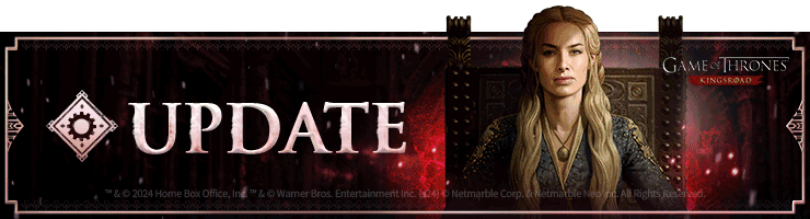 《权力的游戏:冰与火之歌》更新内容 1️⃣ **[新增内容]** - **世界难度扩展** - 新增世界难度【 Hedge Knight III 】。 - 该难度仅对气势值达到280,000及以上的玩家开放。 2️⃣ [改进与调整] 3️⃣ [新增活动] 4️⃣ [商店] 5️⃣ [漏洞修复]### 更新内容 #### 世界难度调整 - 在新的世界难度中,玩家可获得额外的材料奖励,同时获取7阶装备制作材料和高阶饰品的概率也将提升。 #### 全新合作任务 - 合作任务将按服务器分配,需在限定时间内完成。 - 新增基于合作任务表现的排名系统。 - 任务周期结束后,将无法再尝试合作任务。 #### 改进与调整 - **常规** - 优化了在未满足条件时尝试从联盟商店购买物品的提示信息。 - 改进了获取重复家族徽章奖励时的信息显示,使其更加清晰。### 游戏更新内容 #### 功能优化 - **强化系统优化**:强化结果界面现已更新为弹窗显示。 #### 全新活动 - **前往活动页面** #### 商店更新 - **全新战斗通行证上线**: - **战斗通行证:光辉圣盾** - 销售期:截至3月17日晚10:59(太平洋时间) - 活动期:截至3月18日晚10:59(太平洋时间) - 限时特惠、代币兑换商店及联盟商店中已新增全新礼包。 #### 问题修复 - **常规修复**: - 修复了珠宝重铸偶尔无法使用的问题。 - 修复了特定条件下启动游戏时显示不支持语言的问题。 - 修复了锻造概率值四舍五入后显示不正确的问题。### 更新内容 ✓ 请注意,此前仅为显示问题,实际概率已正确应用。 ✓ 请注意,此前仅为显示问题,奖励已按预期发放。 ⬝ **修复了特定条件下进入世界地图时“钥匙位置”菜单仍保持可见的问题。** ⬝ **修复了在特定情况下取消工人分配时出现与耐力相关提示信息的问题。** ⬝ **修复了清除“虫行通道”后,左侧面板奖励列表中未显示“遗物搜寻者”和“遗迹奔跑者”奖励的问题。** ⬝ **修复了特定情况下物品获取路径无法正常生效的问题。** ⬝ **修复了套装研究显示错误成长成本信息的问题。**### 《失落的方舟》更新内容 1. **修复了【装备套装研究论文 - 强大装备碎片】的图标与实际物品图标不符的问题。** 2. **修复了在特定条件下,失落记忆祭坛:灼热峡谷火 wyrm 无法取得进度的问题。** 3. ✨ **战斗与游戏玩法** - **修复了停止“往昔回响”任务时显示“无效任务”消息的问题。** - **修复了在记忆祭坛 - 多恩海岸鸡蛇区域中,红色鸡蛇在特定情况下无法被击败的问题。** 4. ✨ **控制与输入** - **修复了使用游戏手柄时无法将工人分配到生产槽位的问题。**### UI/UX 及视觉优化 ① **修复了队伍邀请弹窗中显示的联盟信息与玩家实际联盟不匹配的问题。** ② **修复了更改联盟名称后,名称标签未能立即更新的问题。** ③ **修复了世界首领难度名称与实际世界难度名称显示不一致的问题。** ④ **修复了特定情况下生产完成奖励显示错误的问题。** ⑤ **修复了特定条件下拥有物品数量显示不正确的问题。** ⑥ **提升了各合作任务进度指示器的视觉清晰度。**### 修复公告 1. **修复了特定条件下,未解锁挑战者相关内容的角色在世界地图上显示挑战者相关文本的问题。** 2. **修复了特定条件下,已满足解锁条件但套装效果仍显示为锁定的问题。** 3. **修复了特定条件下,副特性树“草药学大师”的效果状态不显示的问题。**