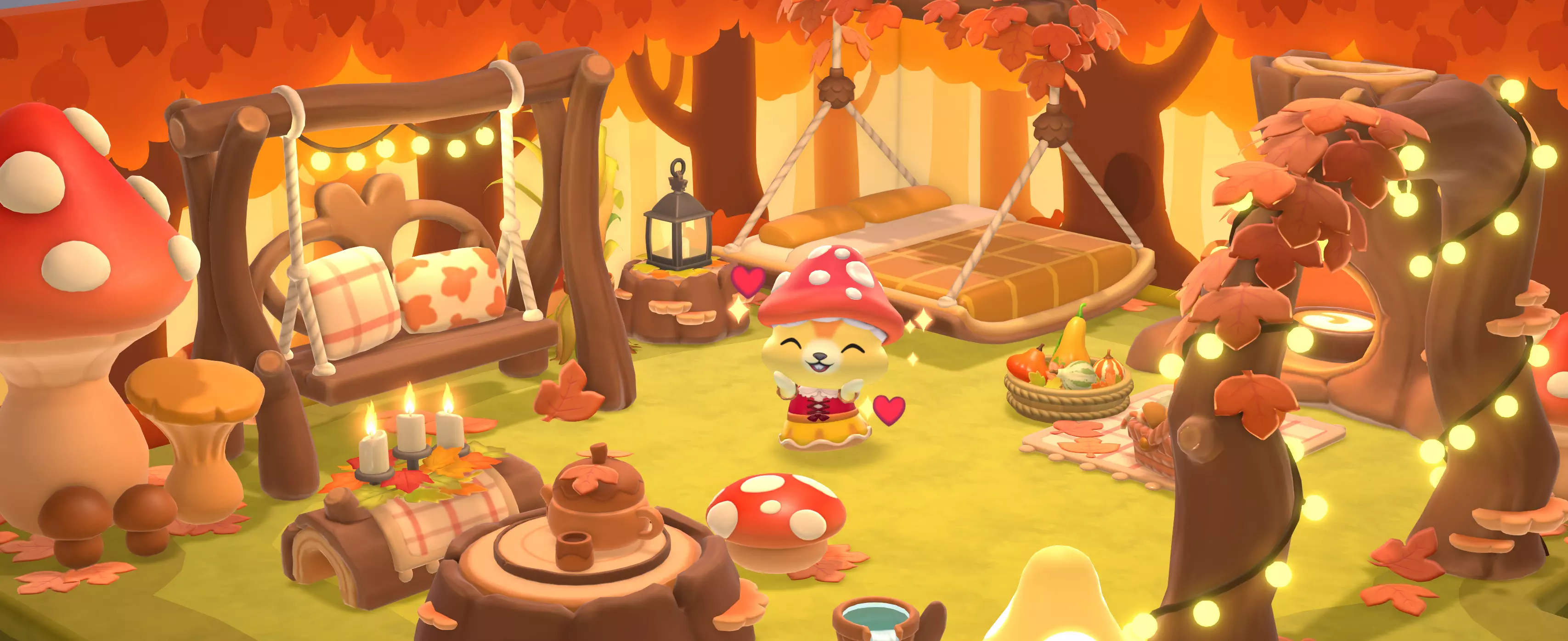 沉醉秋日时光! 围坐聆听大眼蛙的童话故事,用森林主题家具和舒适服饰共庆秋日!加入我们,一同开启丰饶之日活动吧~ 你的秋日冒险即将展开。丰饶之日活动时间为2025年11月3日至11月18日。趁落叶尚在,快来加入吧。